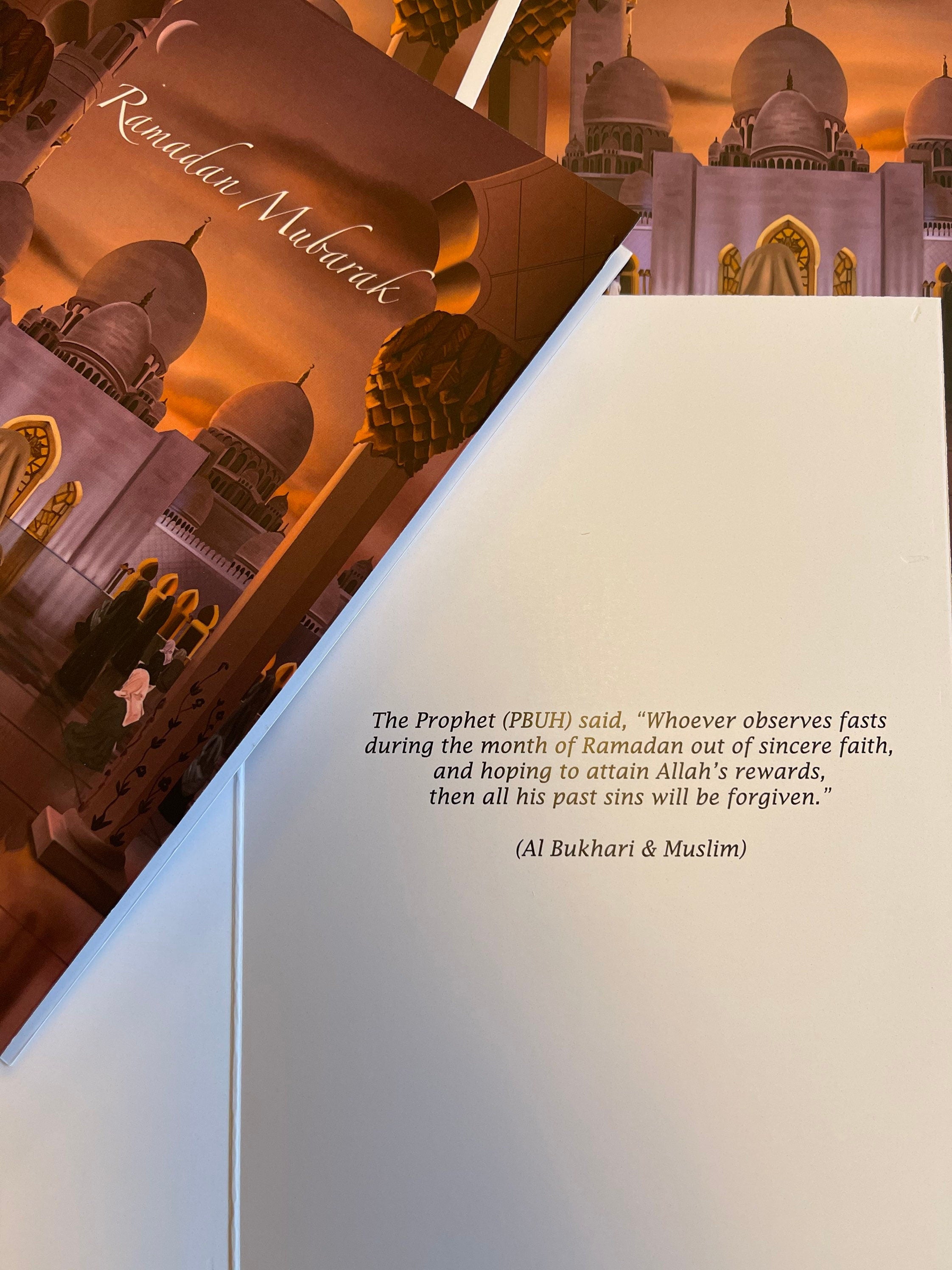 Ramadan Mubarak! Welcome the month of Ramadan in with this beautifully designed card.