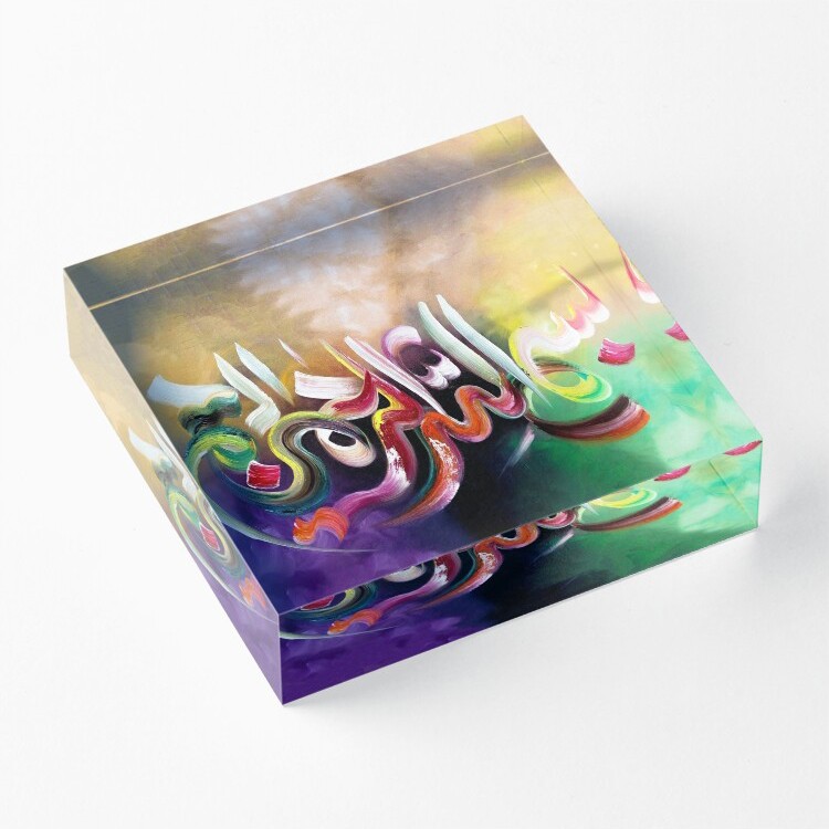 Gorgeous free-standing acrylic block feature a vibrant back-mounted design. Adds an eye-catching pop to desks, tables, and shelves.