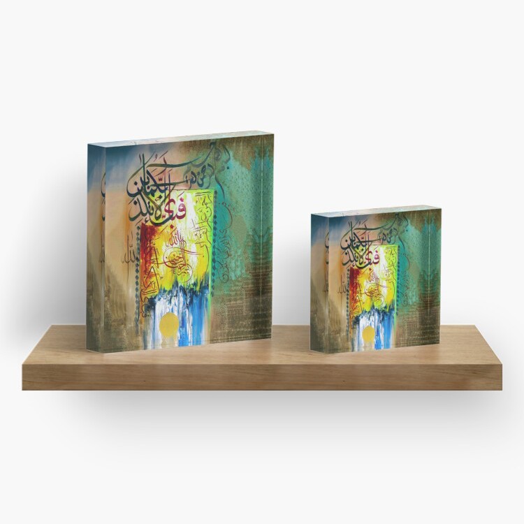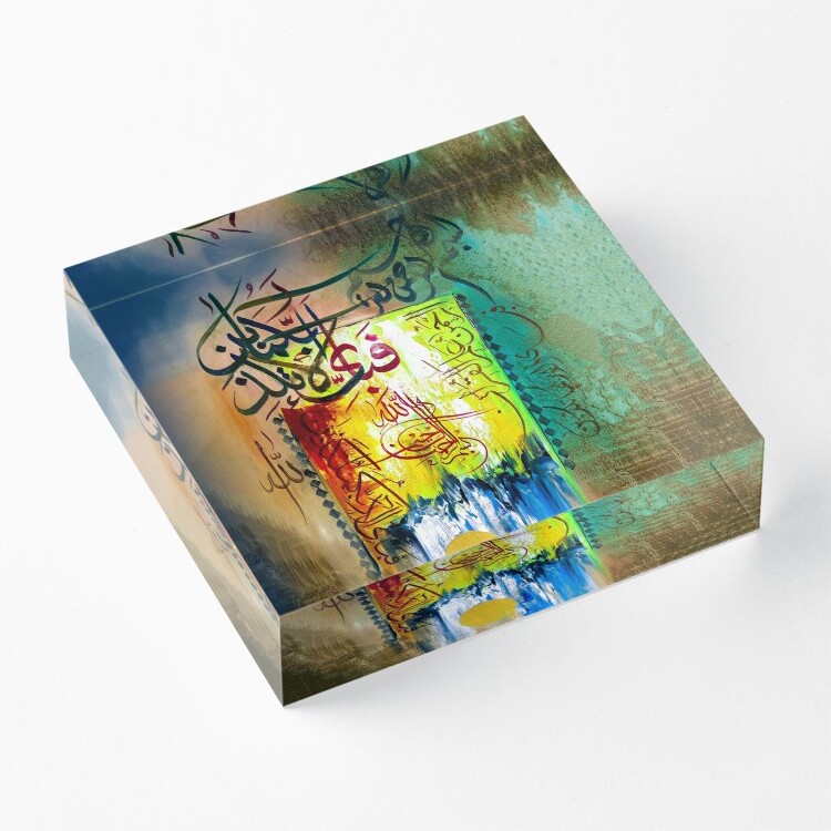 Gorgeous free-standing acrylic block feature a vibrant back-mounted design. Adds an eye-catching pop to desks, tables, and shelves.