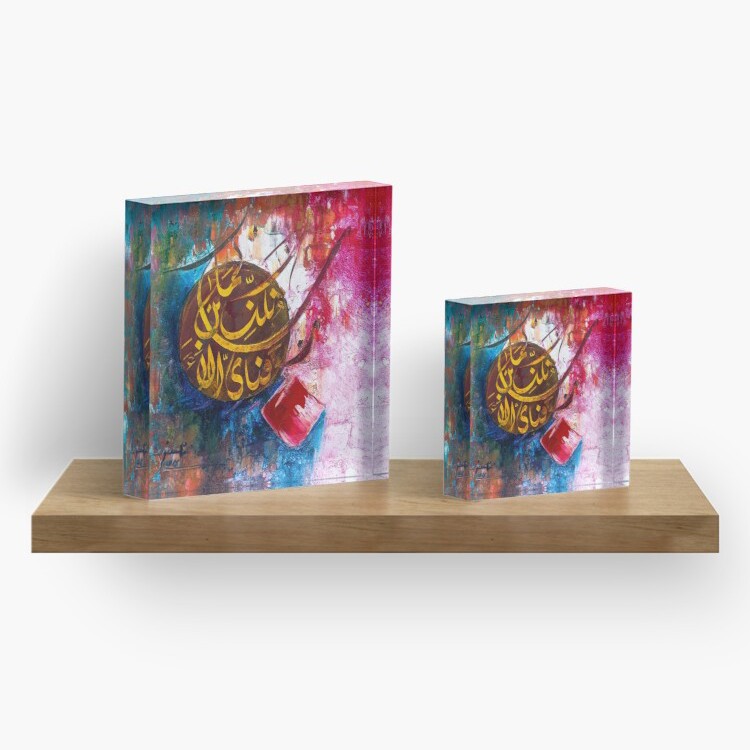 Gorgeous free-standing acrylic block feature a vibrant back-mounted design. Adds an eye-catching pop to desks, tables, and shelves.