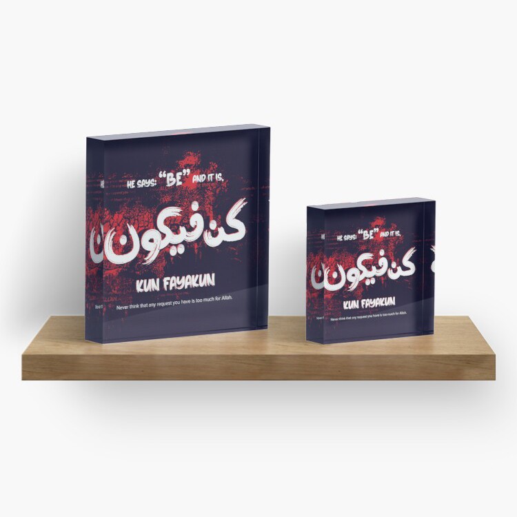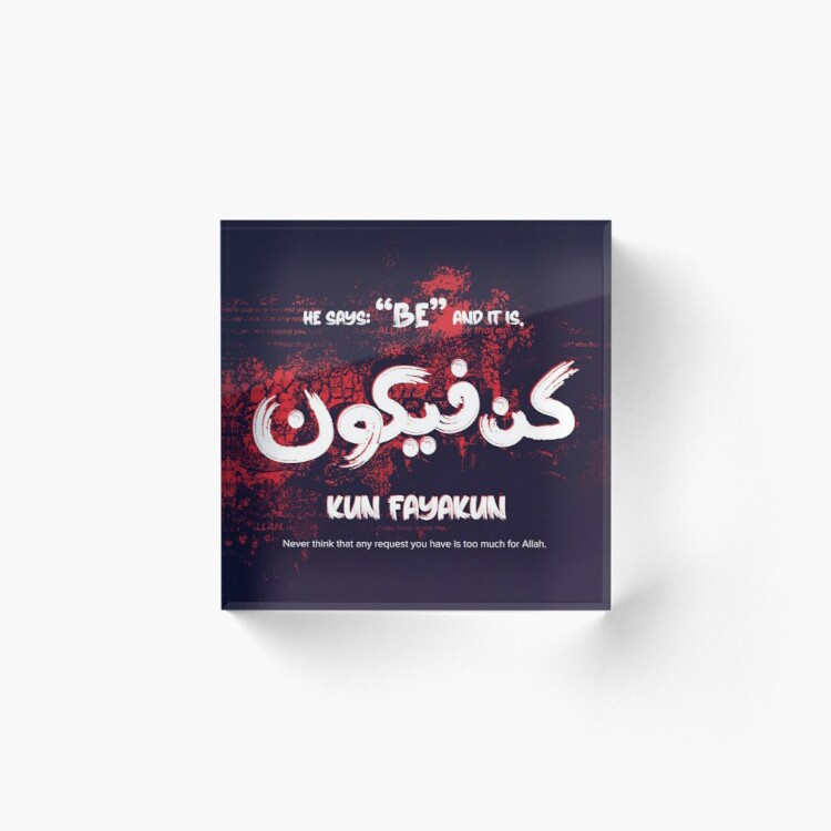 Kun Faya Kun ‘كُن فَيَكُونُ’ with its English meaning in the design ‘Be’ and it is!’ Taken from the most beloved surah of the Quran Ya-sin also referred to as Yasin or Yaseen.