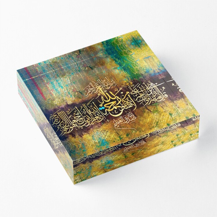 Gorgeous free-standing acrylic block feature a vibrant back-mounted design. Adds an eye-catching pop to desks, tables, and shelves.