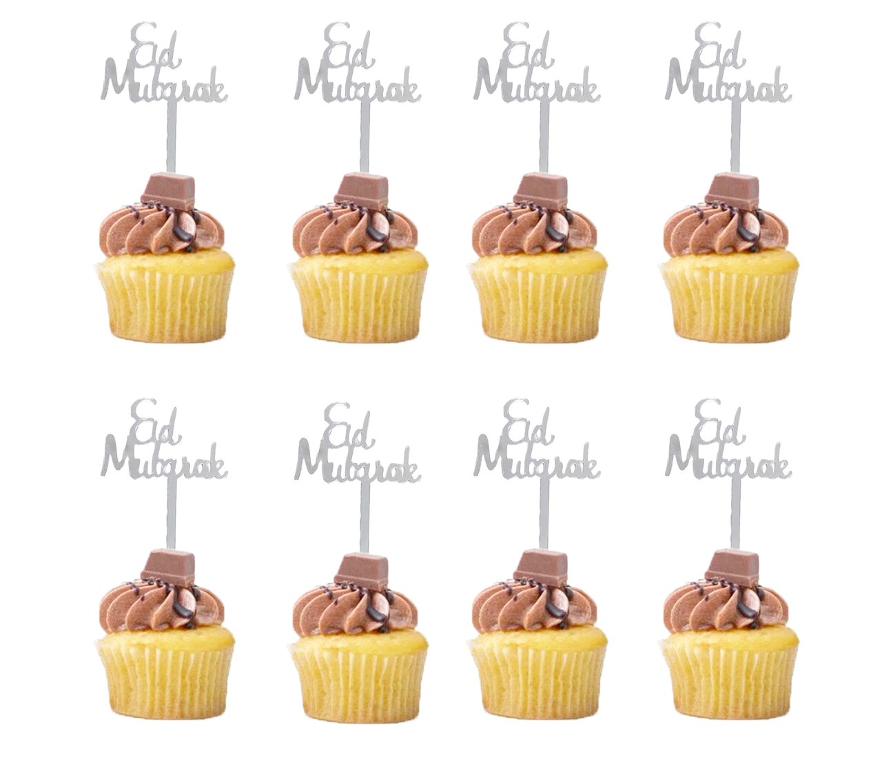 Elevate your Eid celebrations with our stunning Eid Mubarak Acrylic Cupcake Toppers, available in rose gold or silver! This set of SILVER 4 toppers adds a touch of elegance to your desserts and can be reused year after year. Made with metallic acrylic, they exude luxury. A must-have for post-Ramadan festivities, these toppers will make your treats stand out and help you celebrate Eid in style!