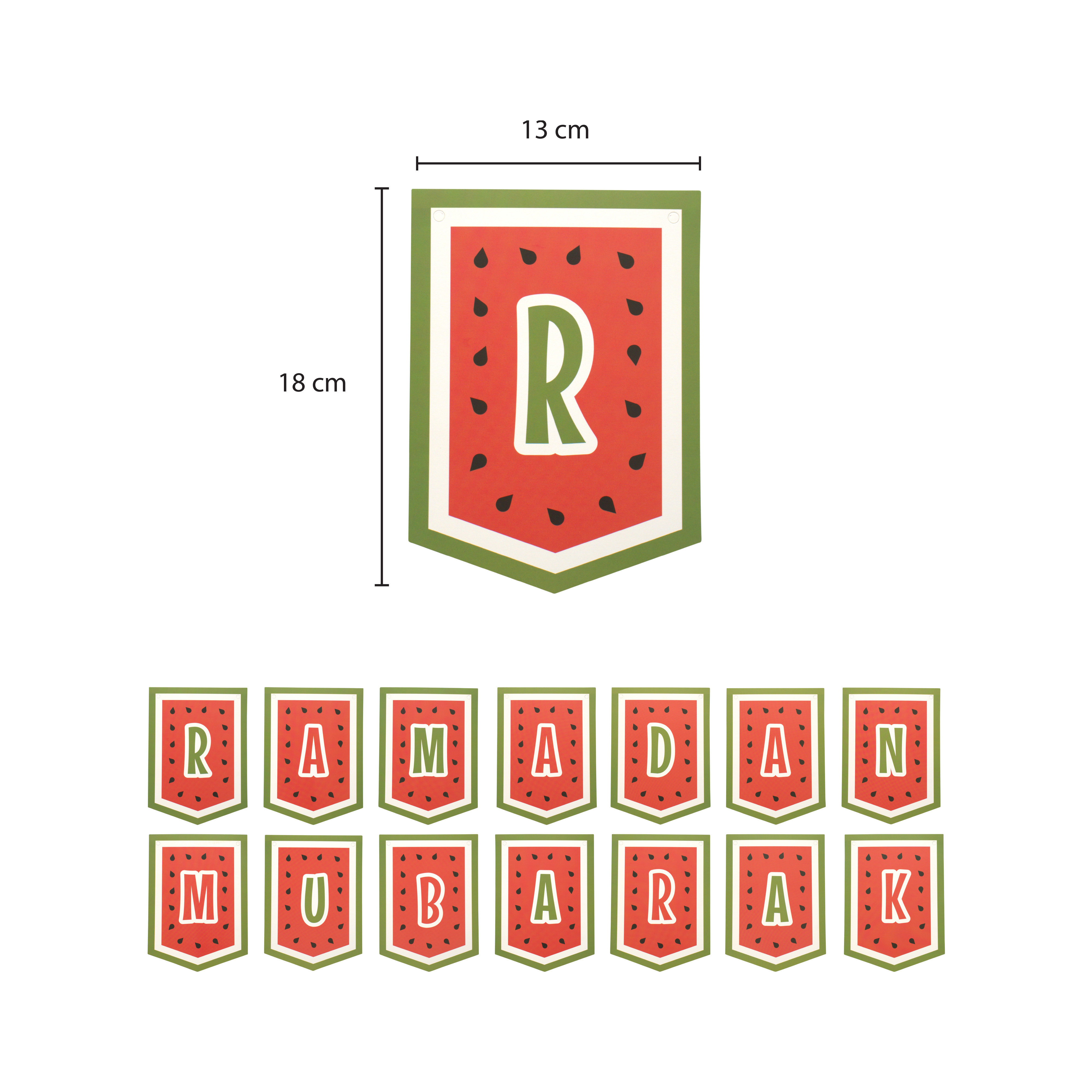 - Ramadan Mubarak Bunting - Watermelon Themed: A string of 10 flags with watermelon-inspired designs. Perfect for decorating your home or prayer space, it adds a festive and peaceful touch to your Ramadan evenings.
