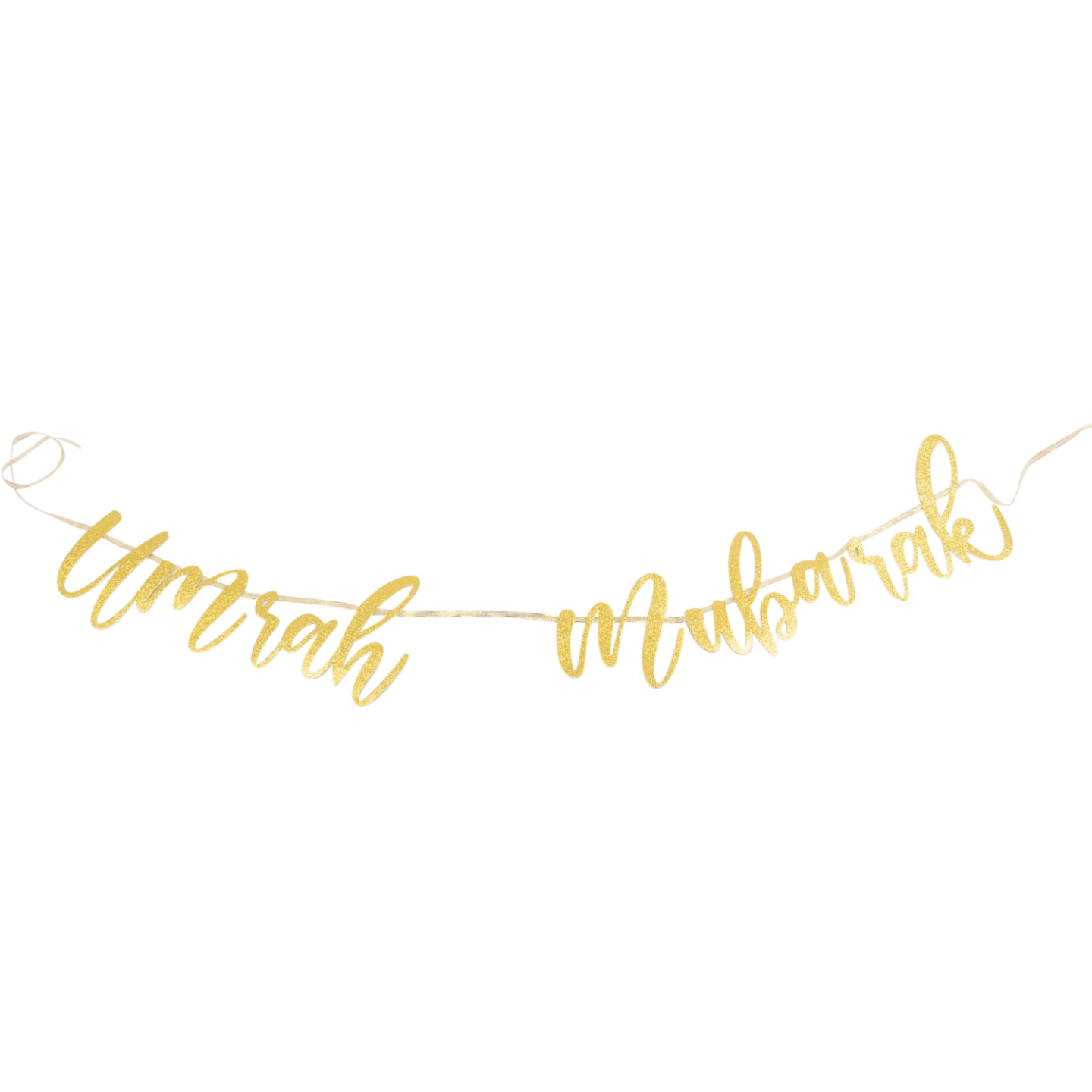 Get ready to welcome the pilgrims back from Umrah with our stunning Umrah Mubarak balloon and bunting party bundle set with a Glittery Golden Umrah Garland Banner