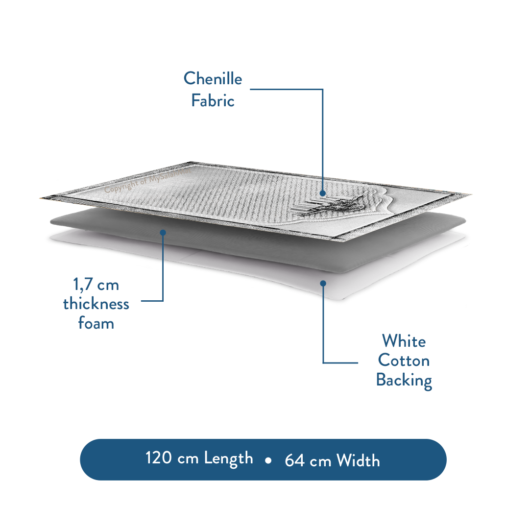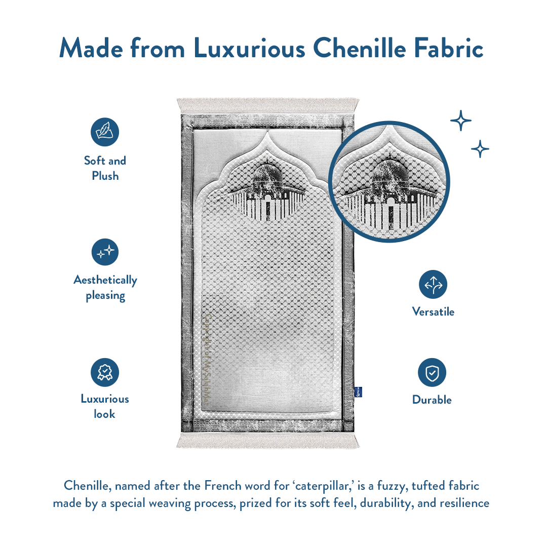 Made with velvety-soft fabric and padded with 1.7 cm of supportive foam, it provides exceptional cushioning for your knees and feet during salah. The engraved Kufiya detailing enhances the design with texture and depth, while the three-layer construction and white cotton back layer ensure durability, stability, and comfort in every prayer.