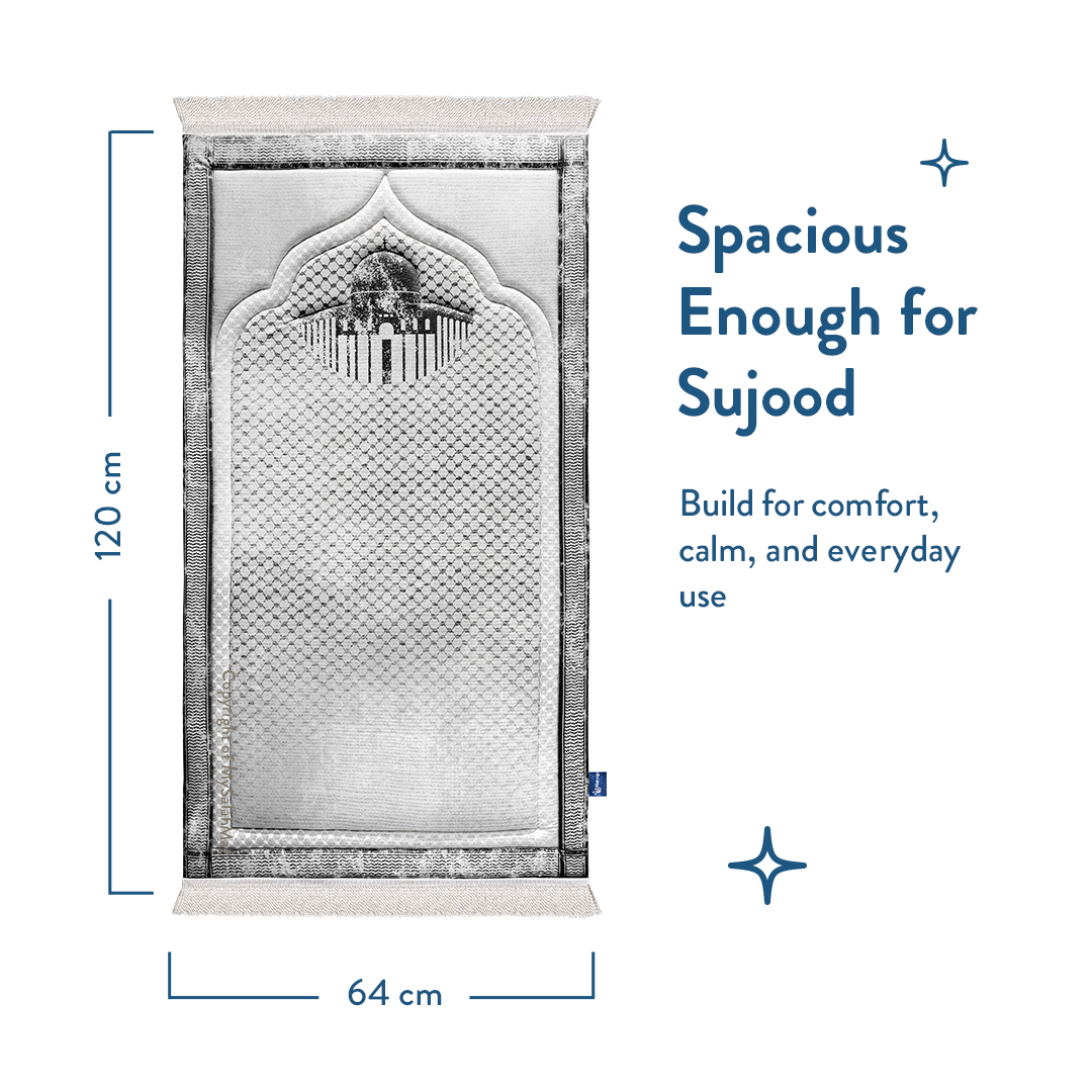 This luxury padded prayer mat is more than a place to pray — it is a reminder of connection, solidarity, and the timeless beauty of Islamic tradition.