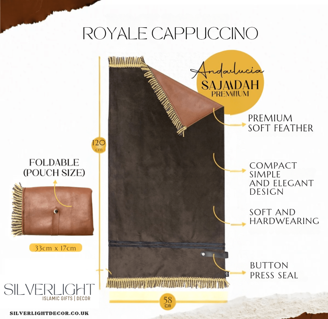Introducing our Royale Cappuccino ANDALUCIA premium foldable prayer mat Set with Tasbeeh