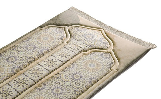 Elevate your salah with our Luxury Hand-Sewn UK Prayer Mat, designed for those who seek both comfort and elegance in their worship. Featuring an intricate Moroccan Mosaic Design, this modern prayer mat blends tradition with sophistication, making it a standout addition to any prayer space.