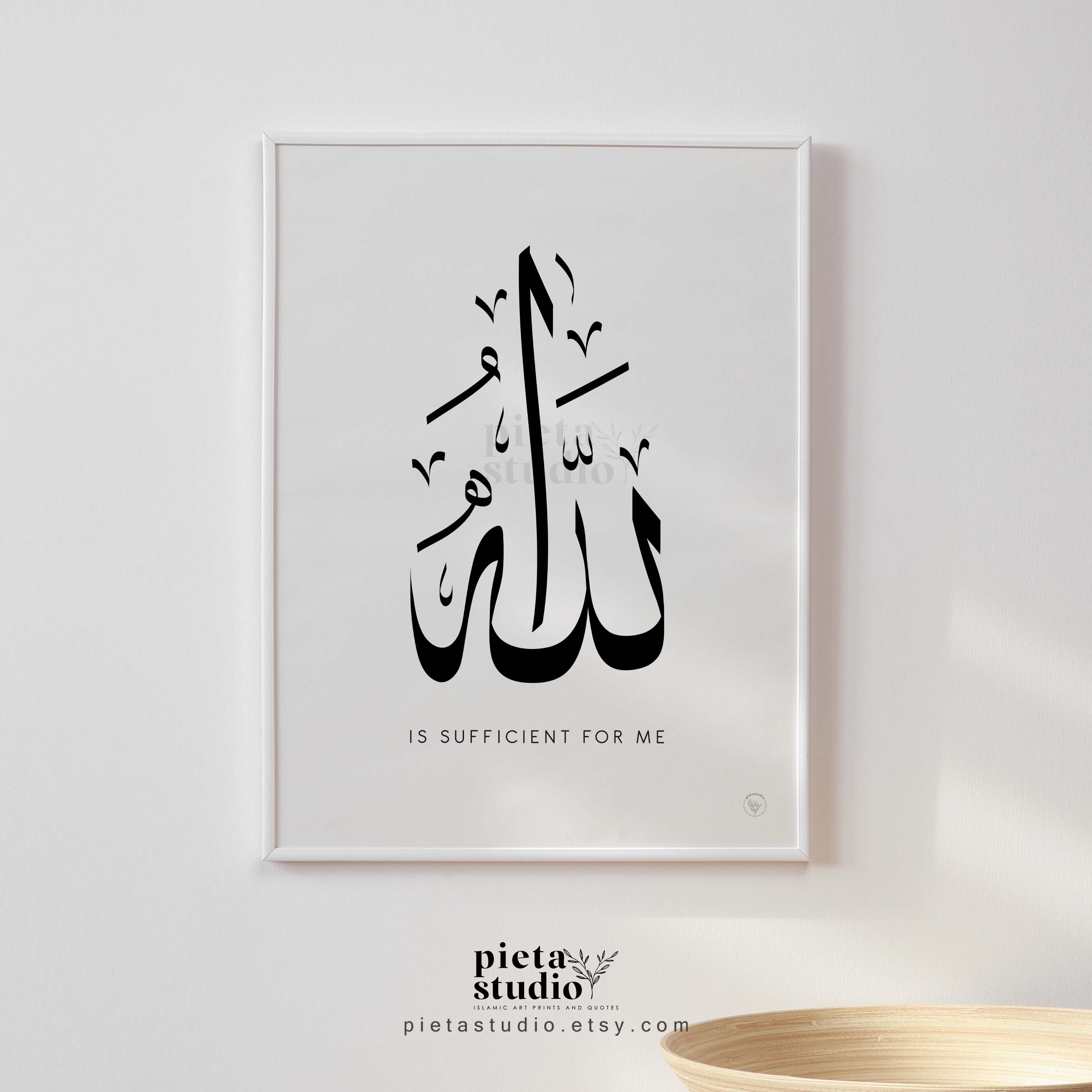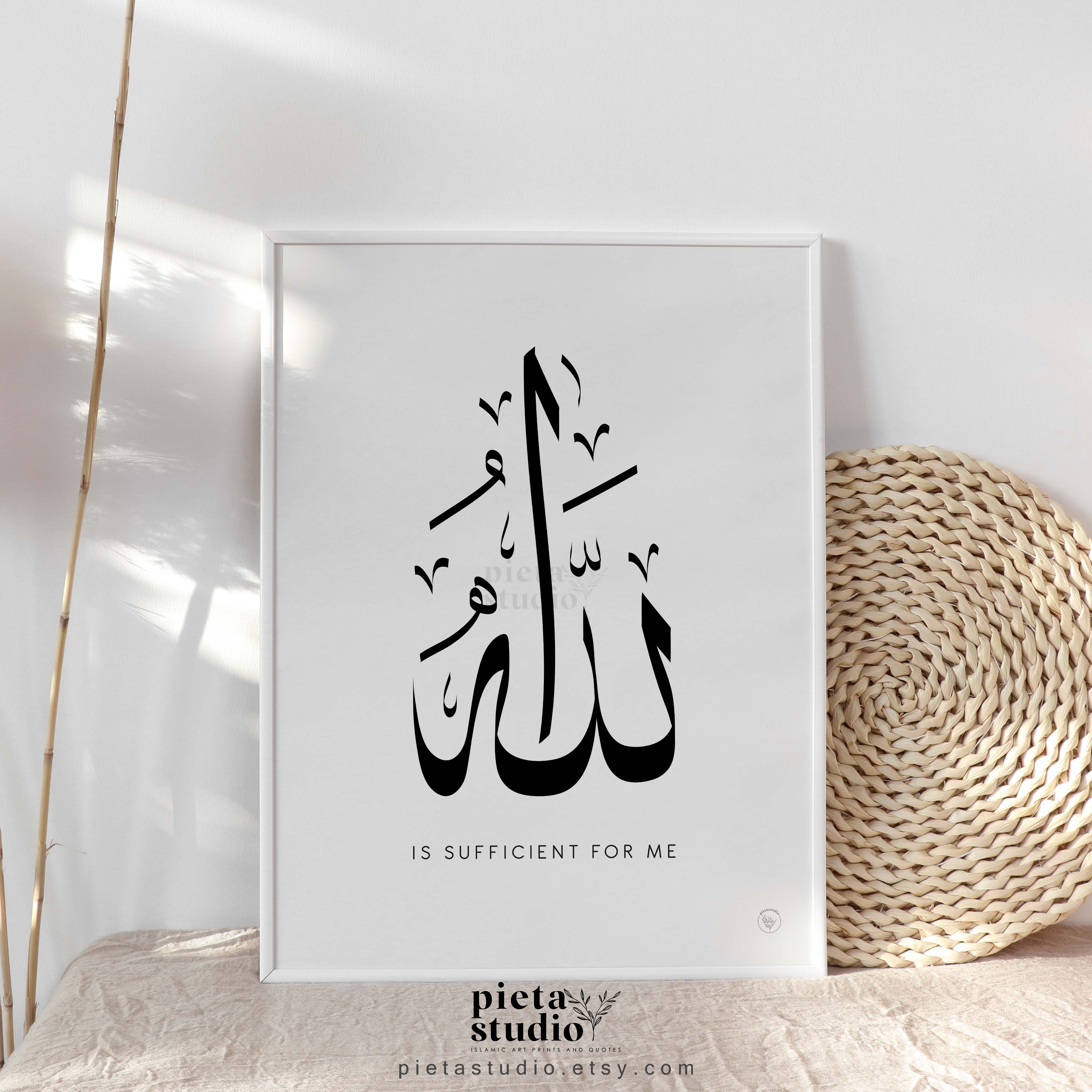 Beautiful Islamic calligraphy wall art of Allah is sufficient for me calligraphy poster. A reminder and also modern minimalist home decor to decorate your home. Decorate your home and daily life with this Islamic calligraphy wall art. Available in instant download you could print by yourself or your preference print store