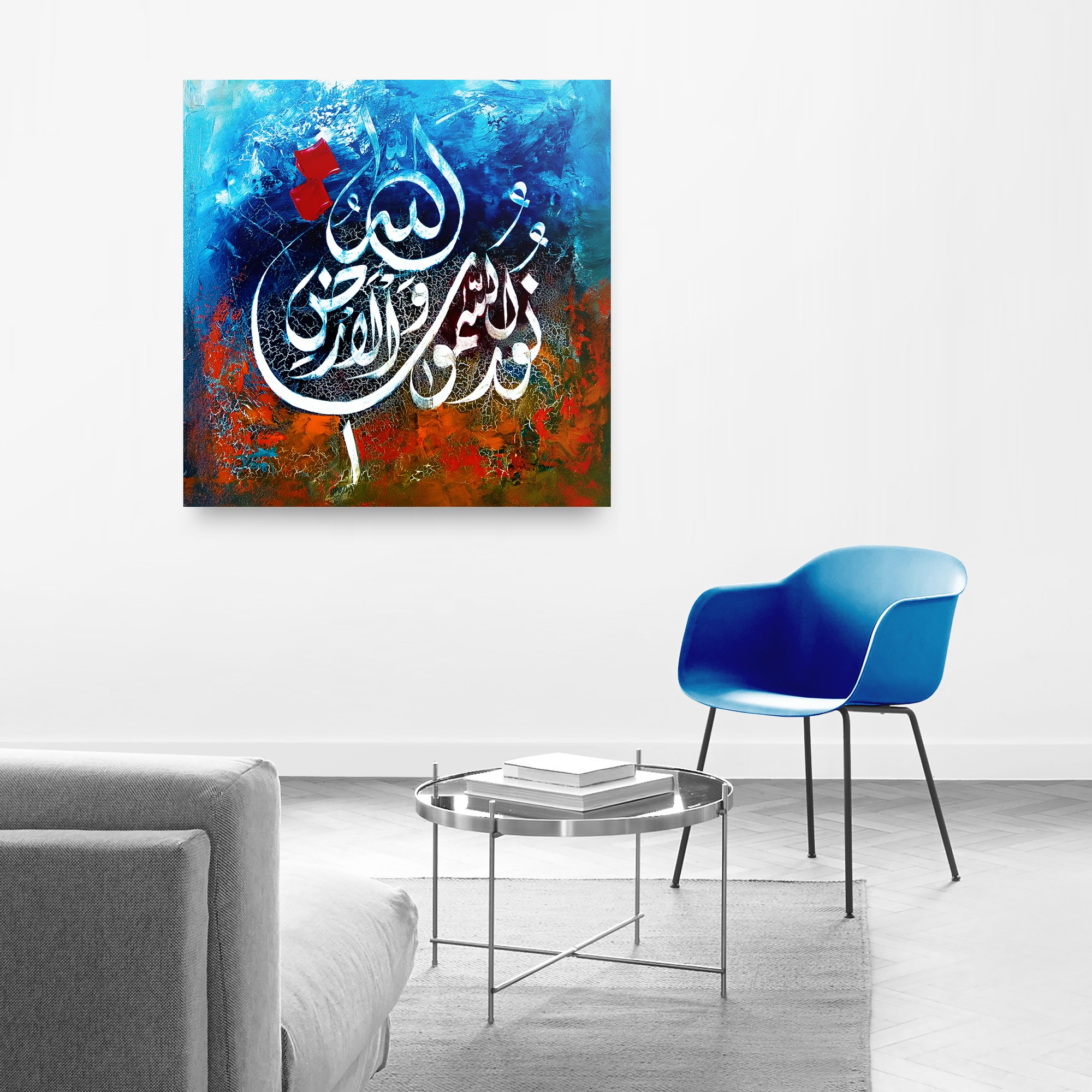 “Allahu Nurus Samawati wal ard.” – this verse is the 35th verse from the 24th chapter Surah Al-Nur, of the Qur’an اللهُ نورُ السماواتِ و الأرضِ which translates to ‘Allah is the Light of the heavens and the earth.’