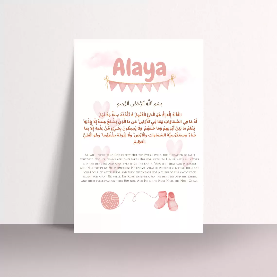 Ayatul Kursi, an Islamic protection prayer for Muslims.