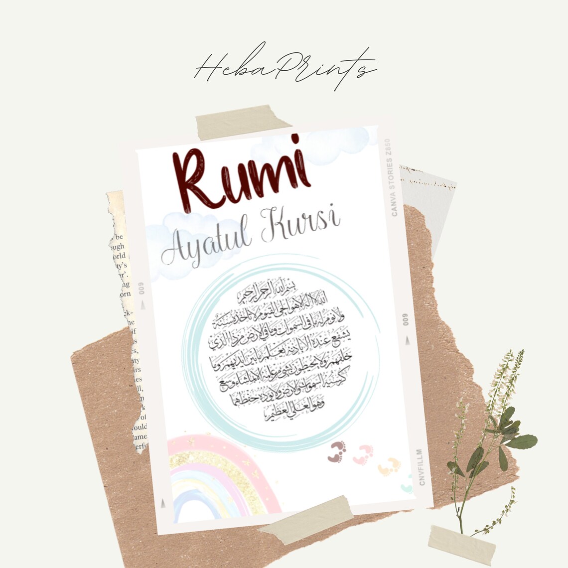 What you will receive: a Personalised baby print with Ayatul kursi (supplication) in Arabic