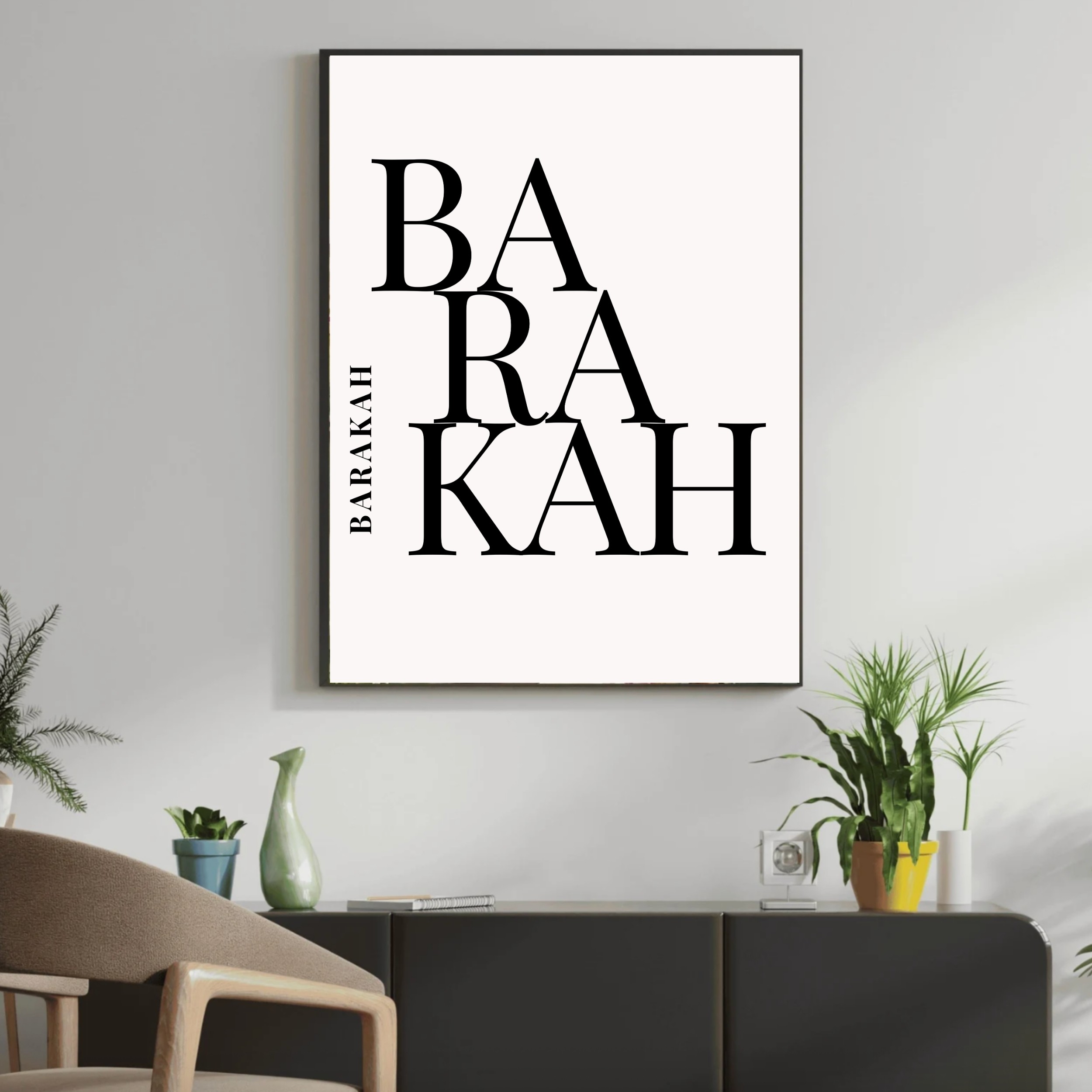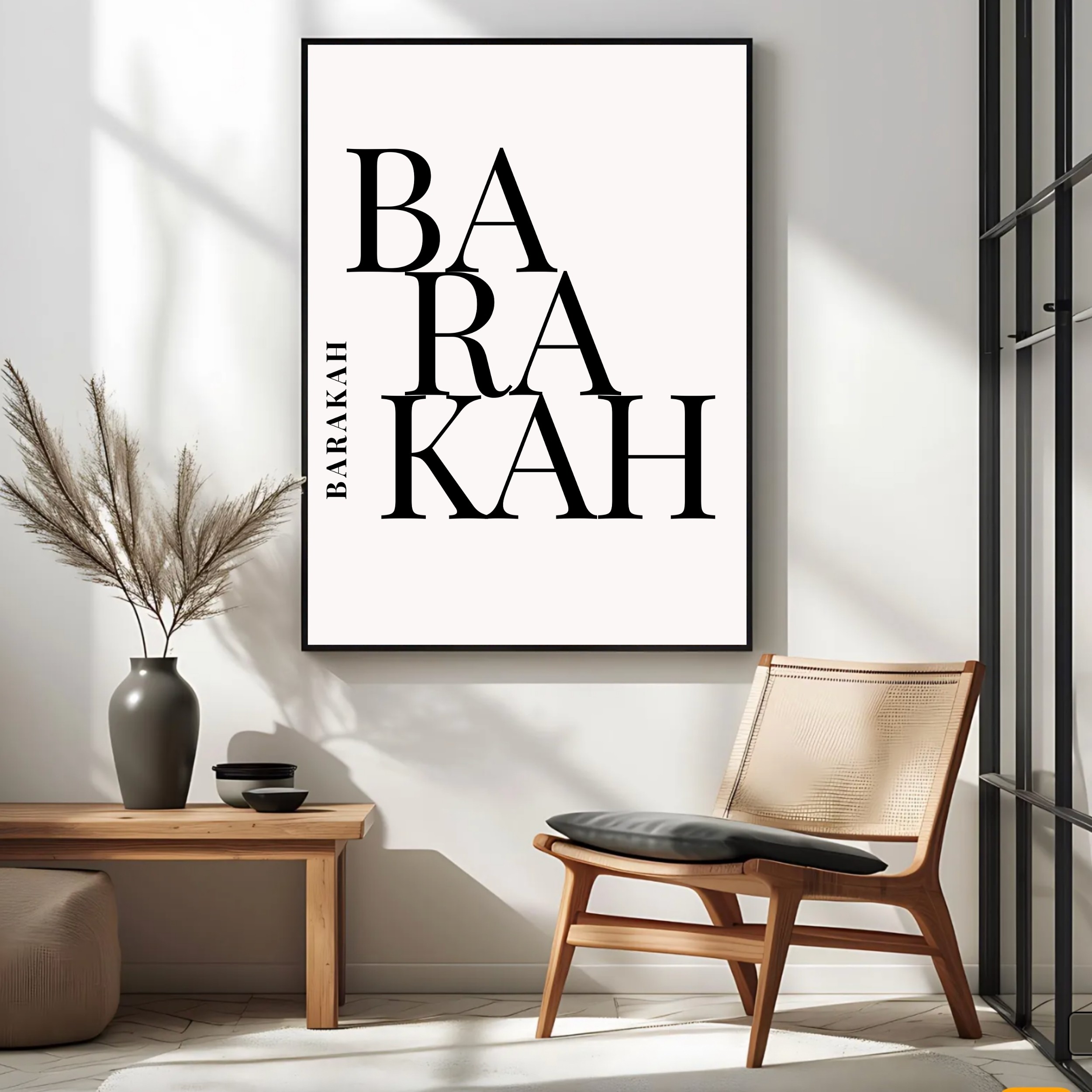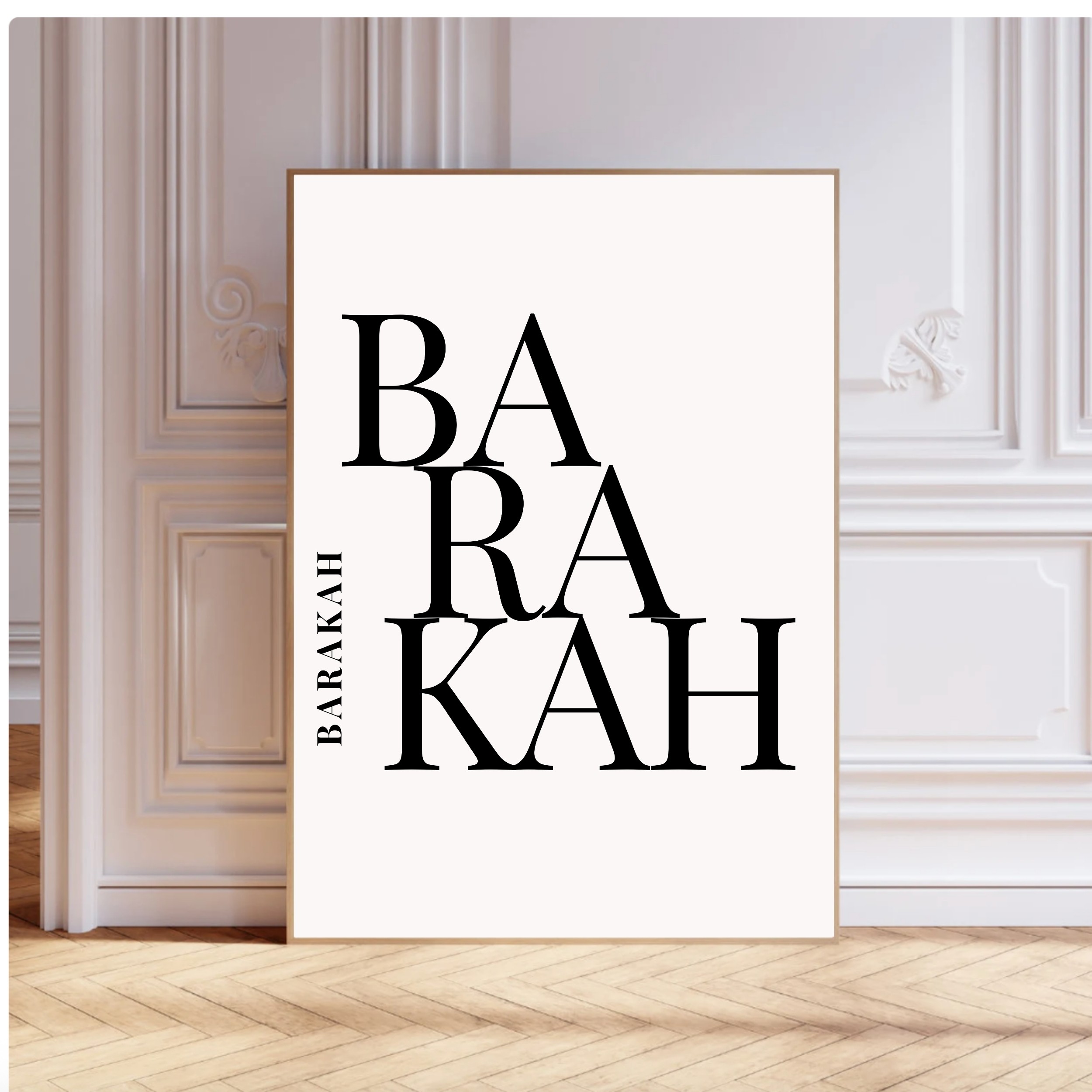 Looking to add a meaningful touch to your space? This bold and elegant Barakah print was designed to do just that. The word Barakah (meaning blessing, growth, or divine abundance) is brought to life here in a clean, editorial-style layout — simple, powerful, and deeply rooted in faith.