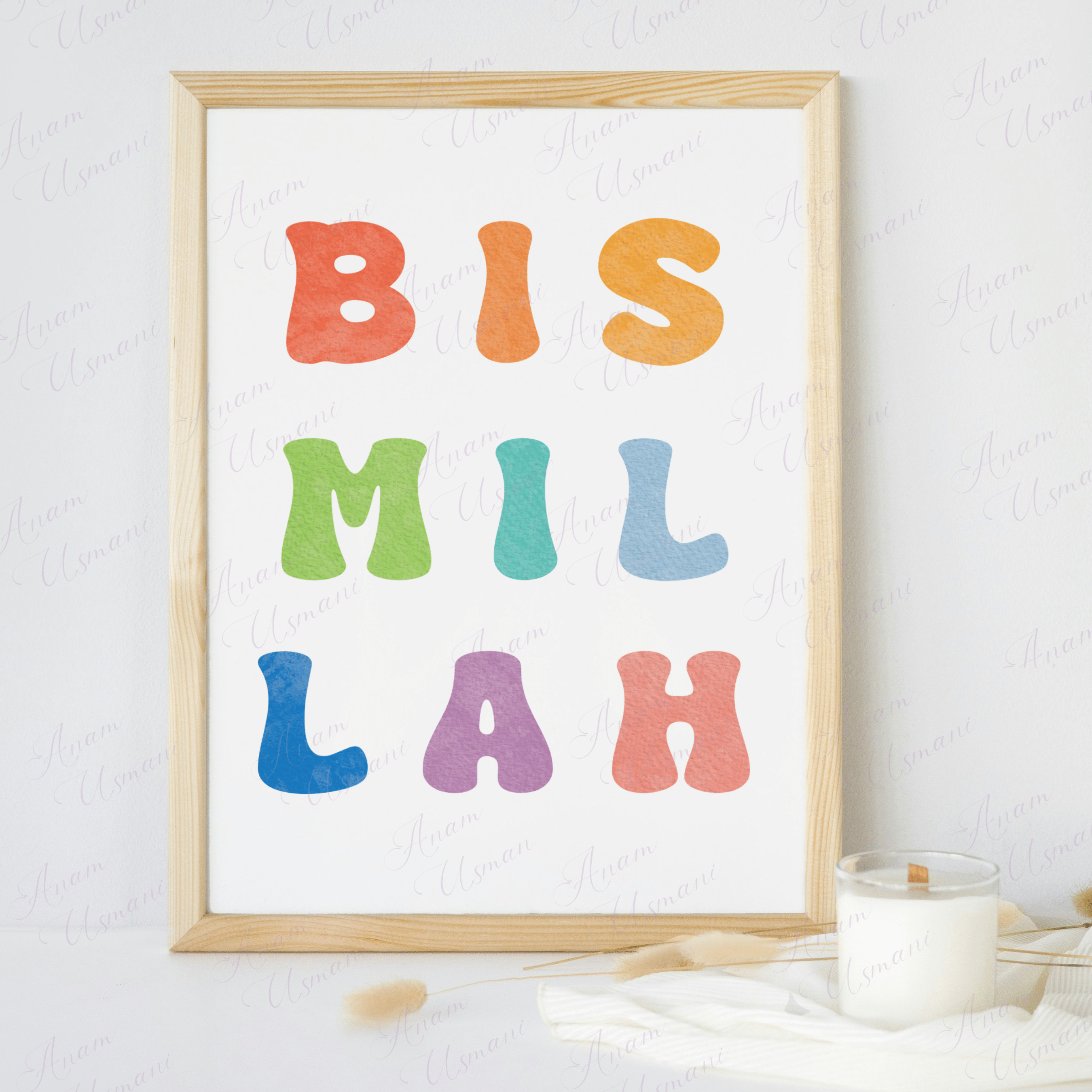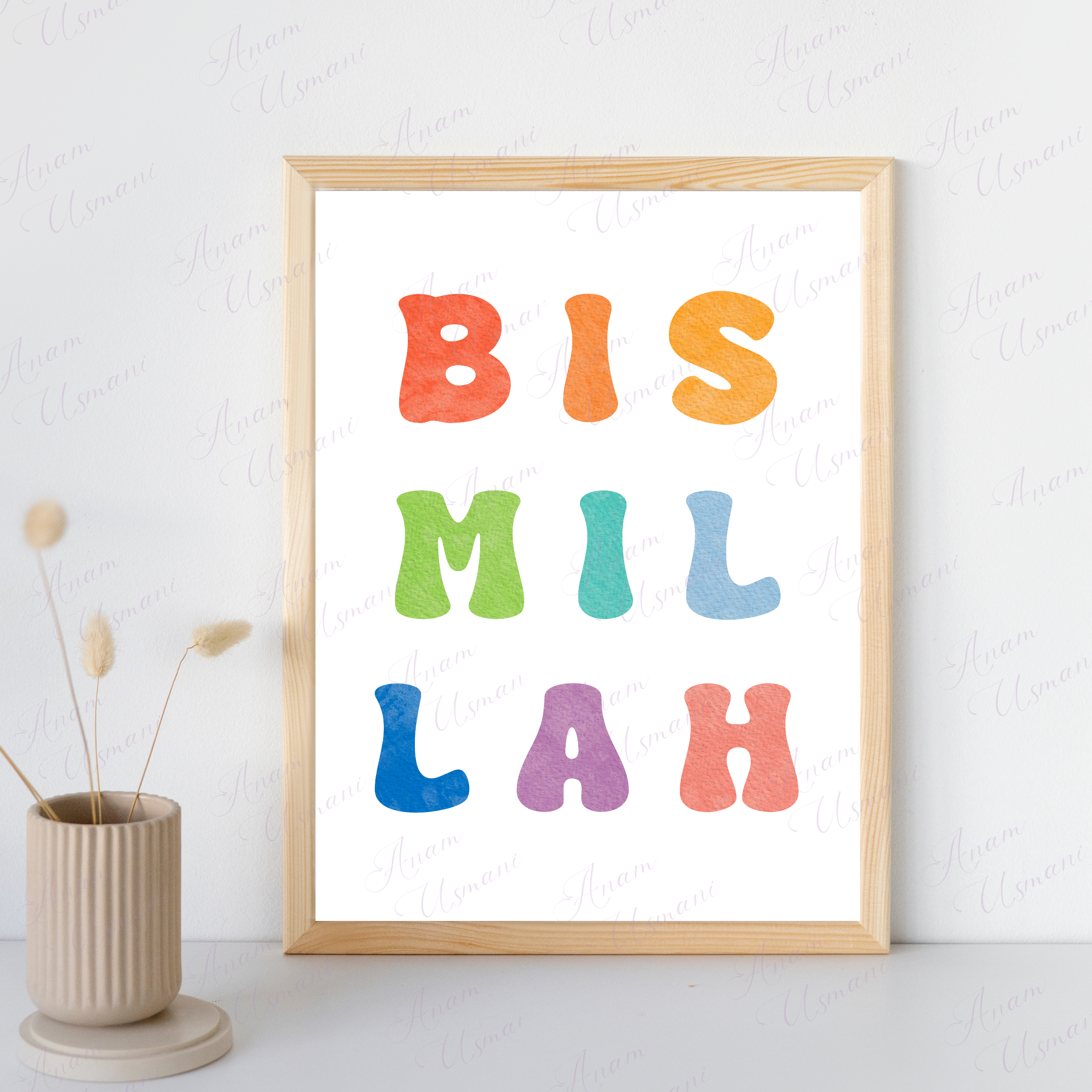 Bismillah Wall Print|Islamic wall art|Islamic home decor|Kids Decor|Islamic art|Islamic calligraphy|Arabic Calligraphy|Islamic Print|Nursery