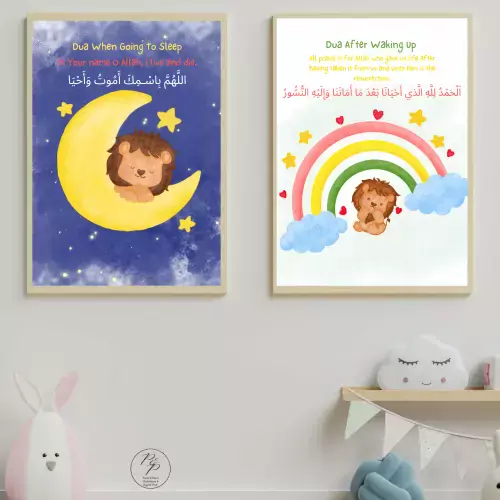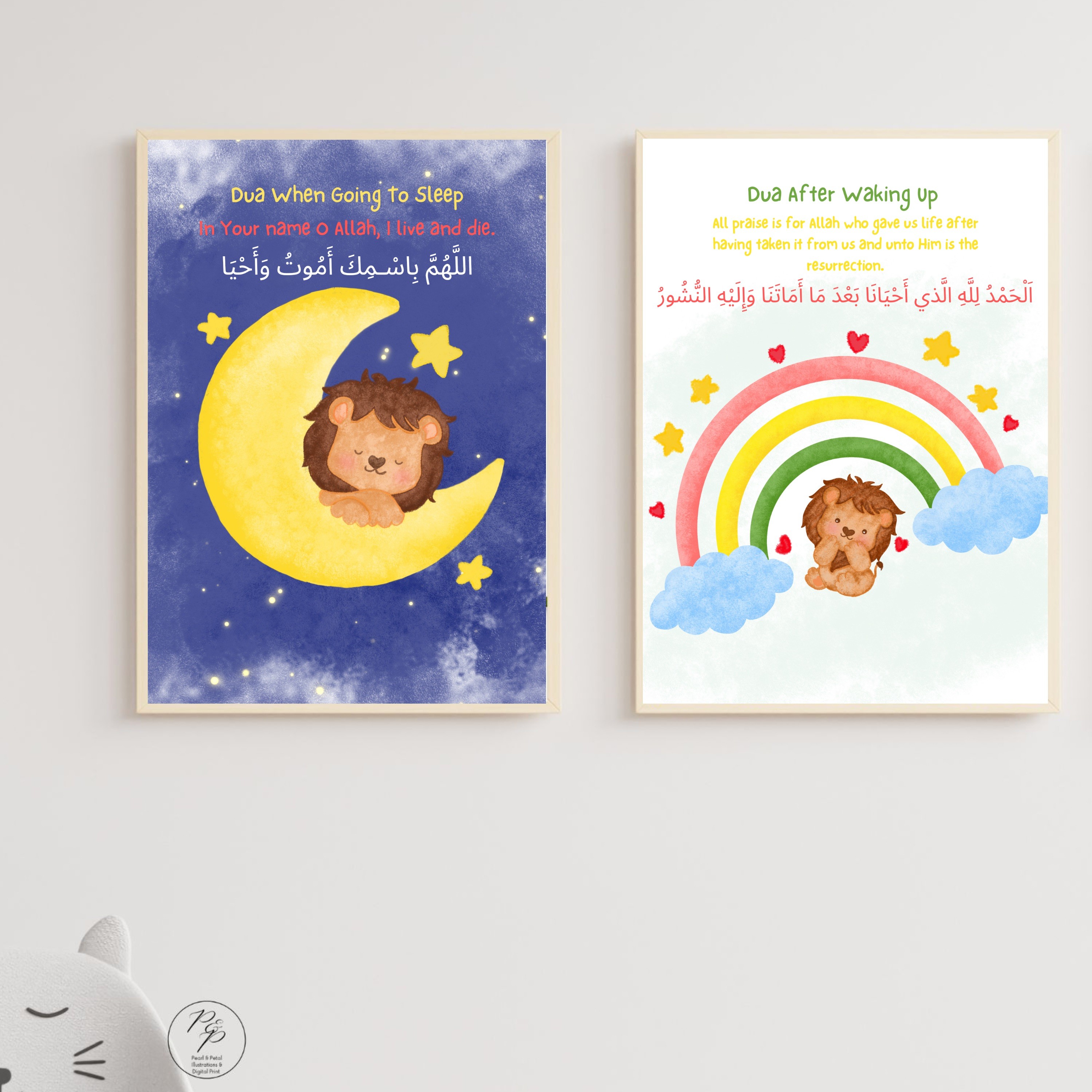 Duas for Sleeping and Waking|Islamic Art for Children|Nursery Decor|Muslim Home Decor|Islamic Kids Art|Islamic Wall Decor|Islamic Nursery
