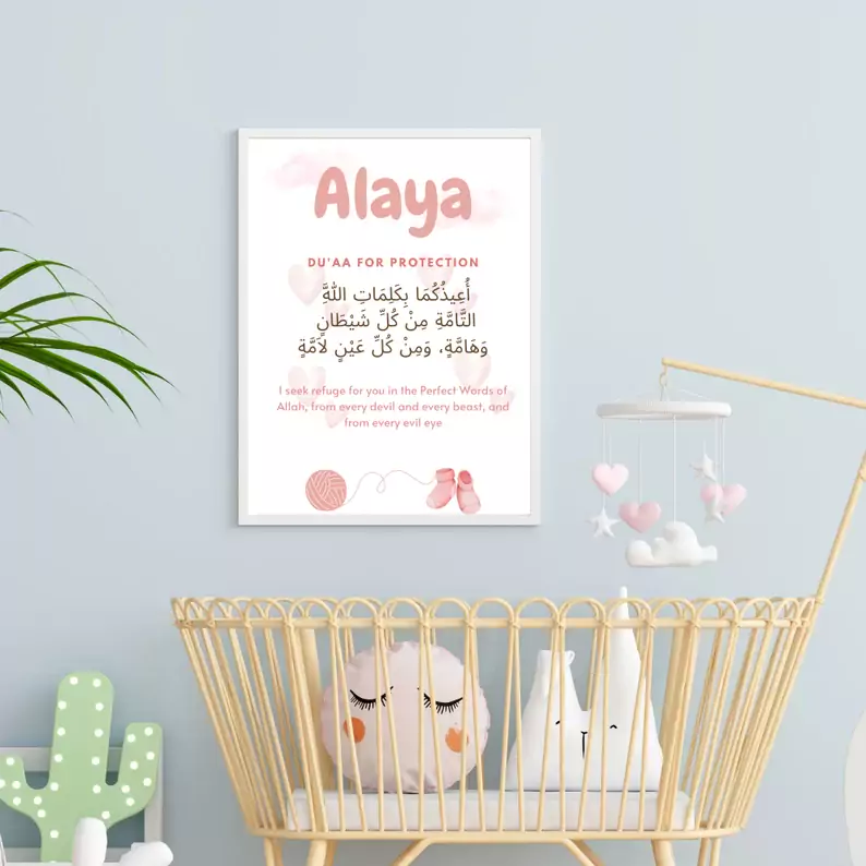 Personalised baby boy name Print with Islamic protection du'aa (supplication) in Arabic and English with transliteration IF REQUESTED.