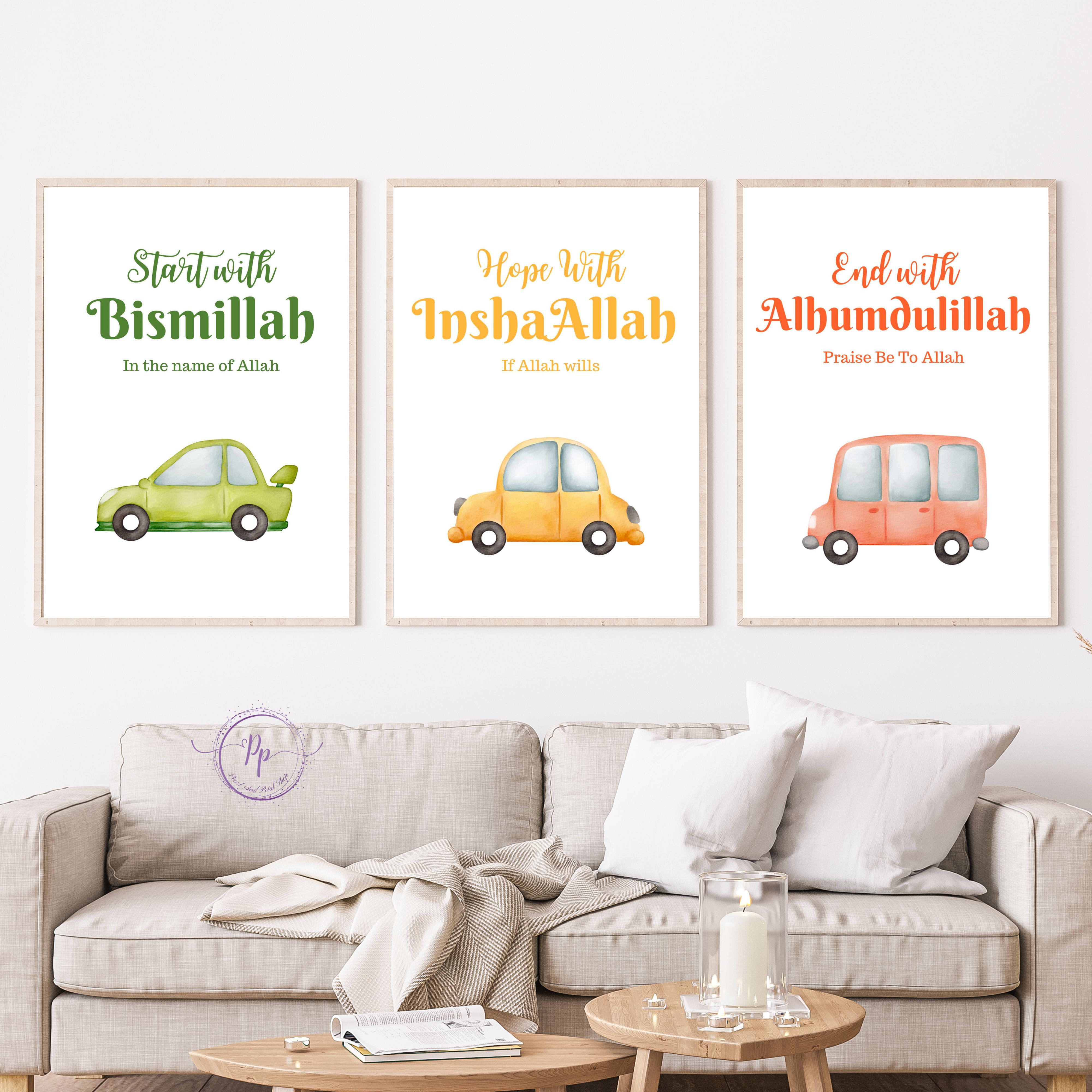 Islamic Digital Wall Art Boho, Set of 3 Islamic Prints, 3 Piece Muslim Wall Art, Islamic Gifts, Bismillah Printable Art, Islamic Posters
