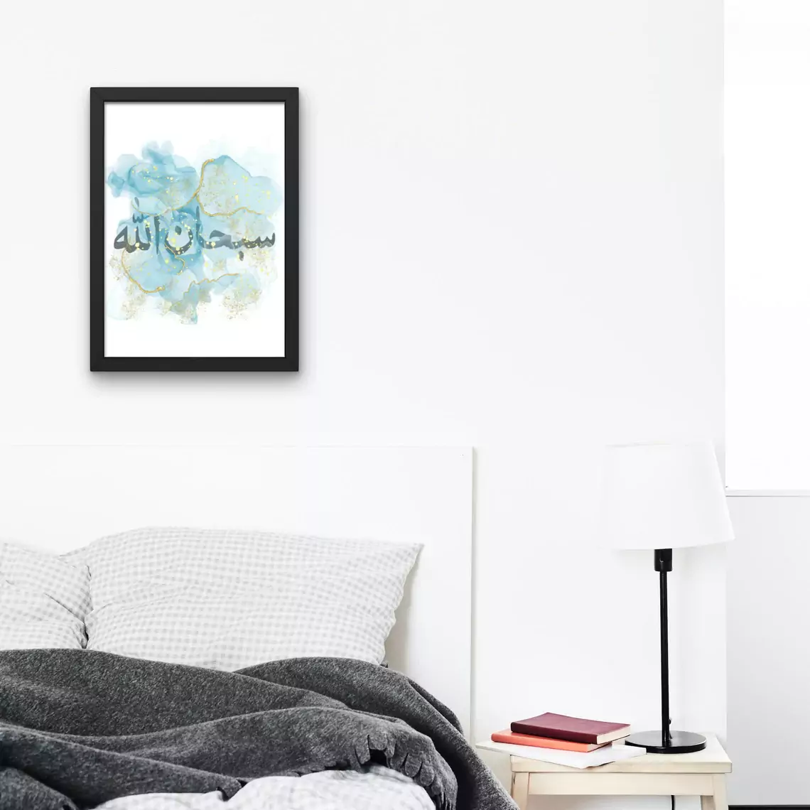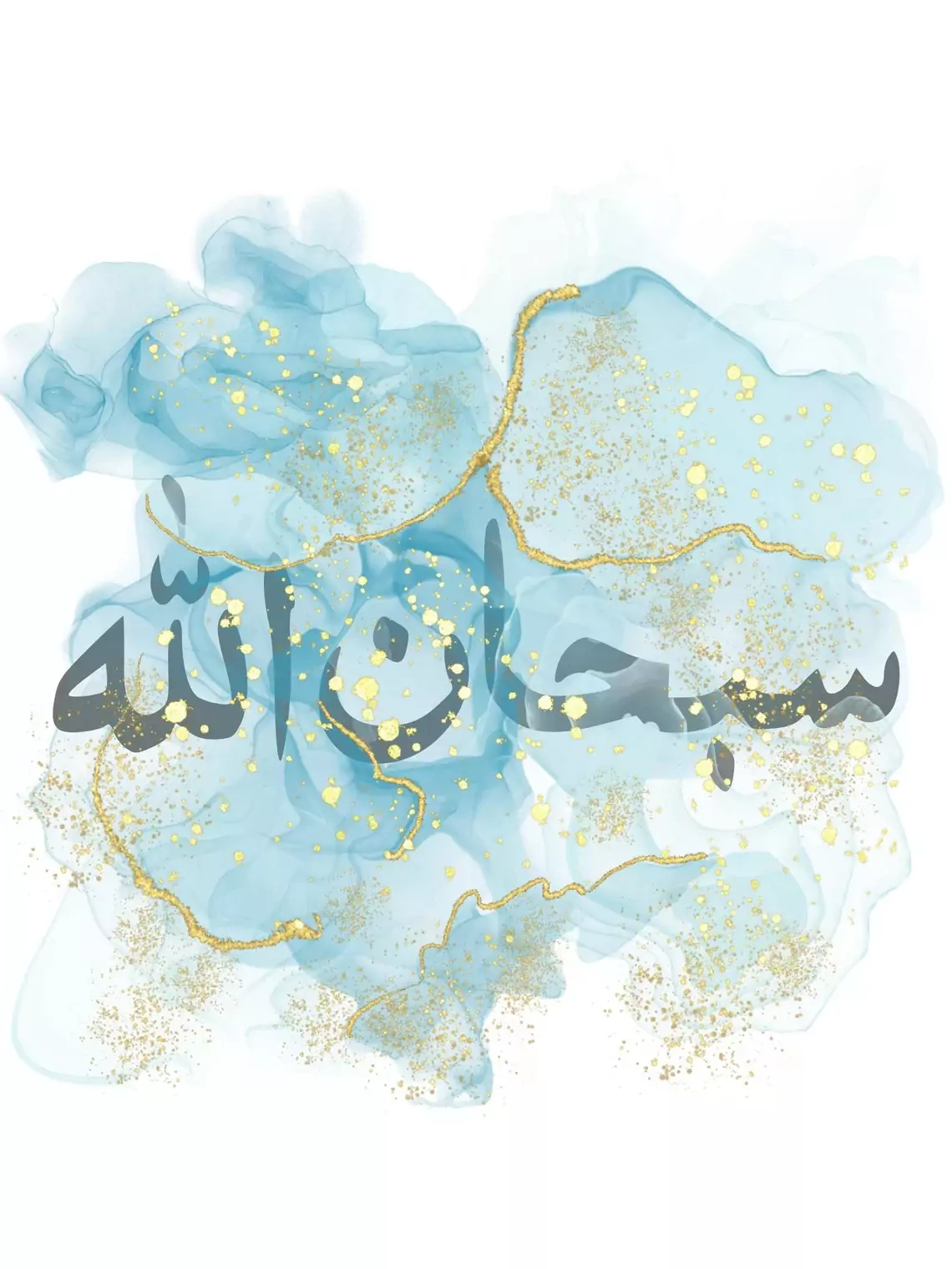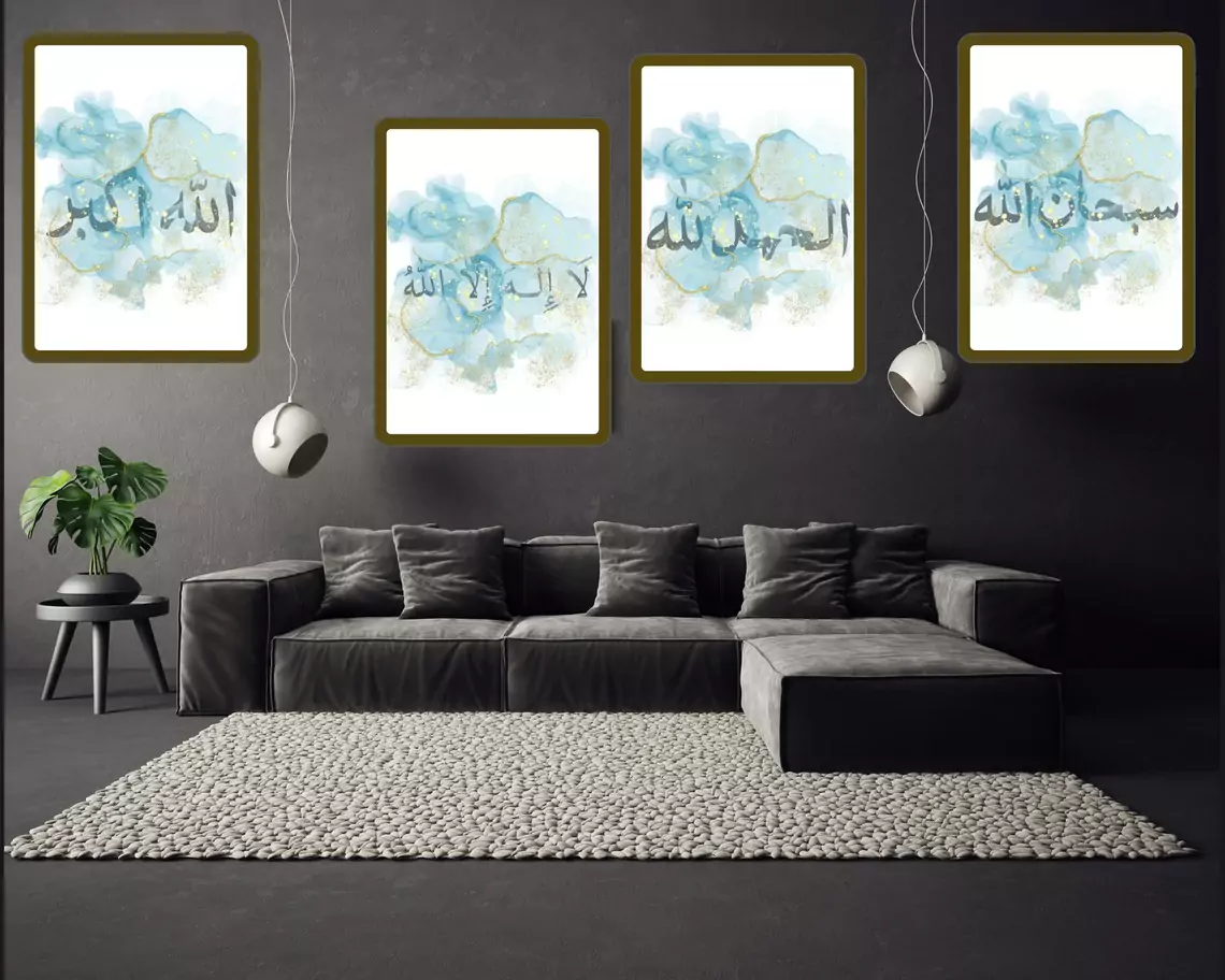 Digital Islamic Wall Art Printable, Arabic Wall Art, Subhanallah Alhamdulillah La Illah Ila Allah Allahuakbar, Blue Gold Poster, 18x24.