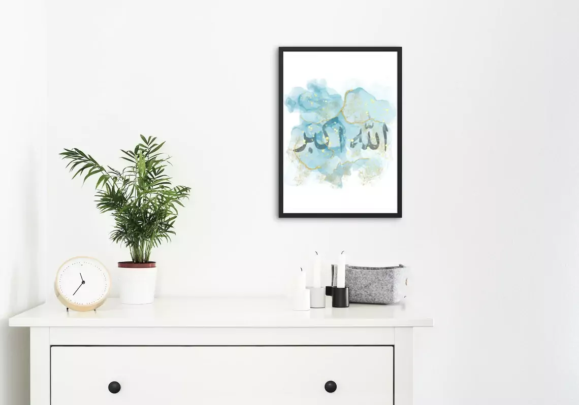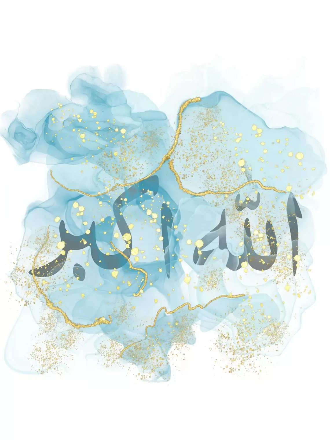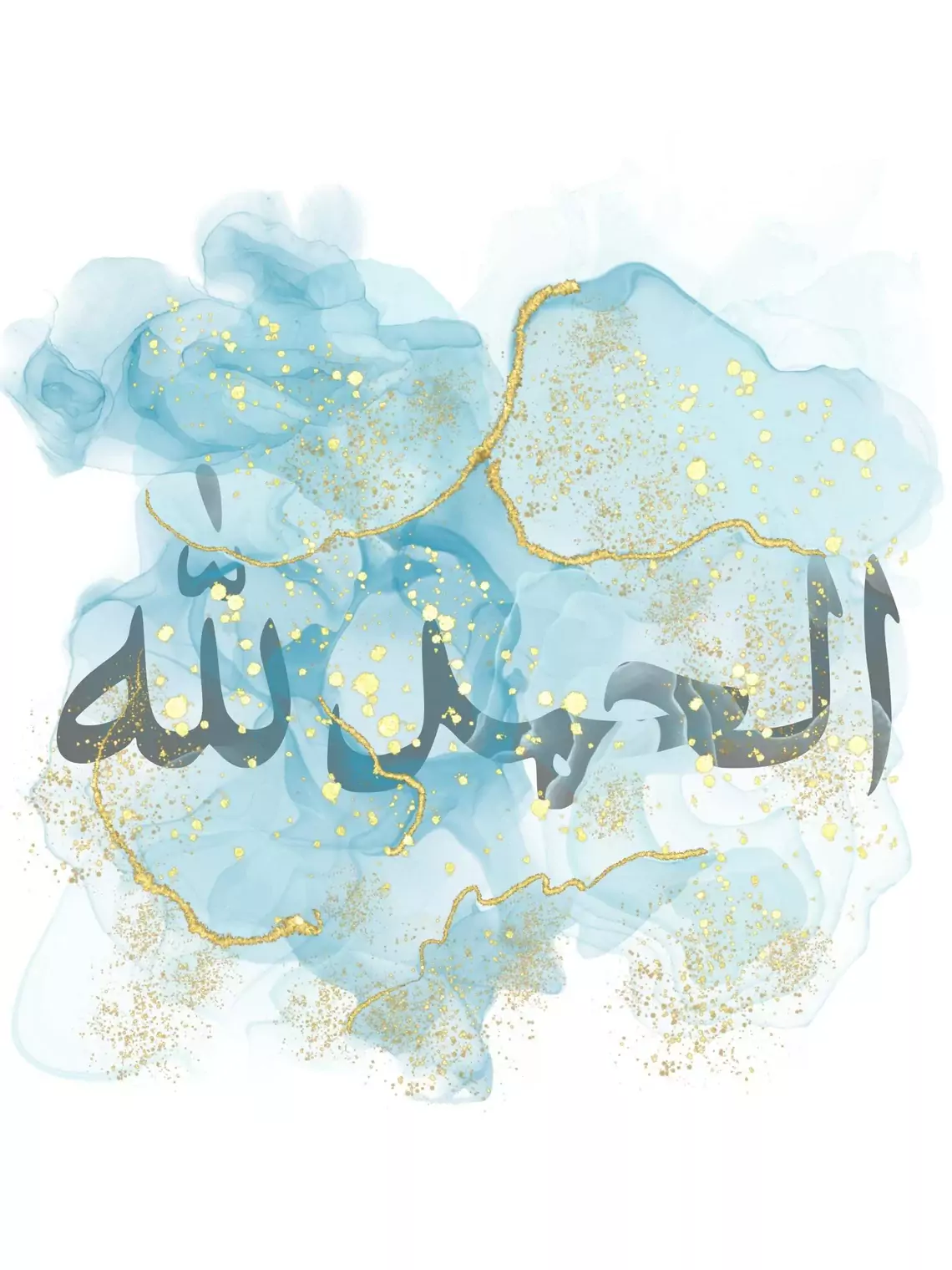 Digital Islamic Wall Art Printable, Arabic Wall Art, Subhanallah Alhamdulillah La Illah Ila Allah Allahuakbar, Blue Gold Poster, 18x24.