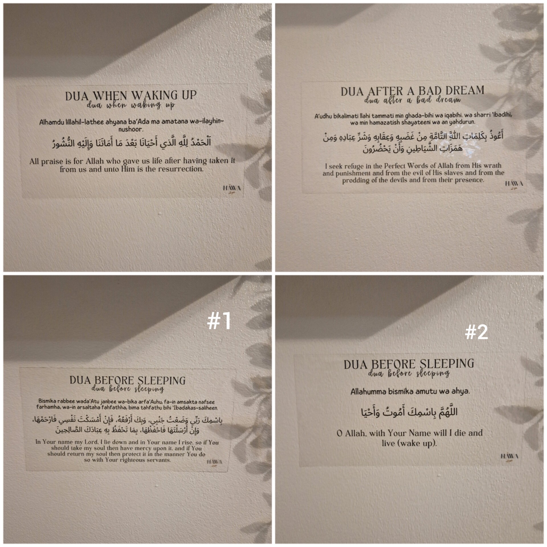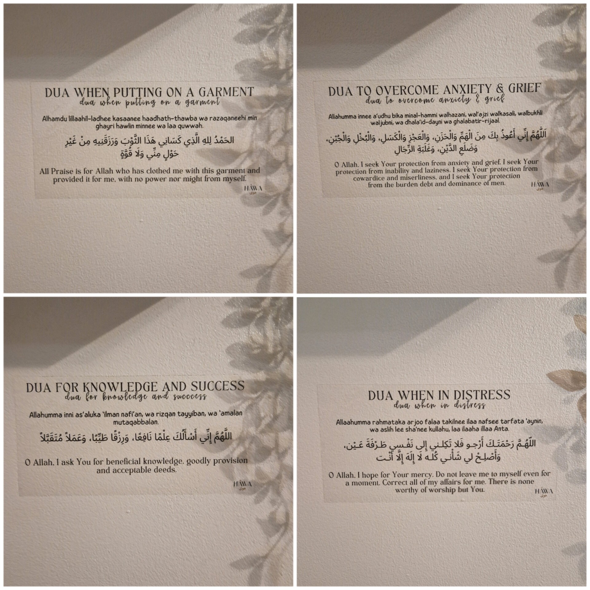 Key Features: Minimalist Islamic wall art designed to inspire and uplift High-quality materials ensure durability and a seamless blend with any décor Versatile placement options - perfect for living rooms, bedrooms, offices, and more Each sticker features a carefully selected dua for daily reflection and mindfulness Easy application and residue-free removal, making it effortless to rearrange your décor
