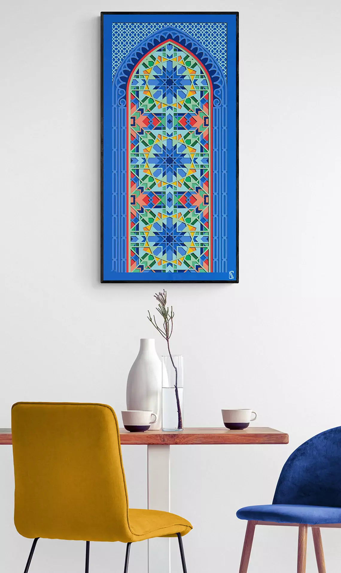 This soothing digital art is based on Morocco geometry and architecture. Titled 'Labyrinth' for its complexity, you will lose yourself as you try to decode its secrets. A mesmerizing printable artwork that is guaranteed to liven up your personal space.