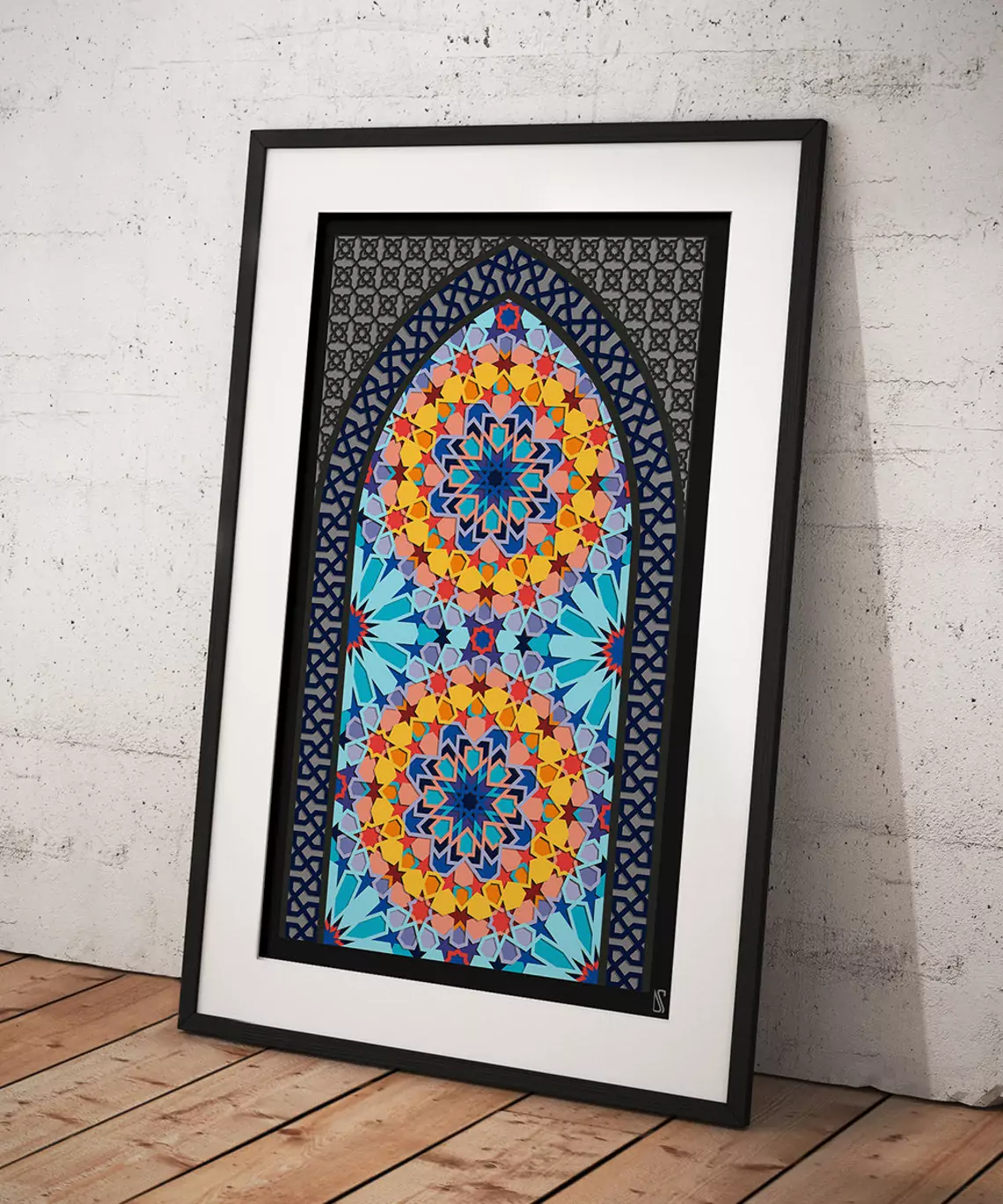 This soothing digital art is based on Arabic geometry and architecture. Titled 'Nebula' for its galactic colors and design, you will lose yourself as you try to decode its secrets. A mesmerizing printable artwork that is guaranteed to liven up your personal space.