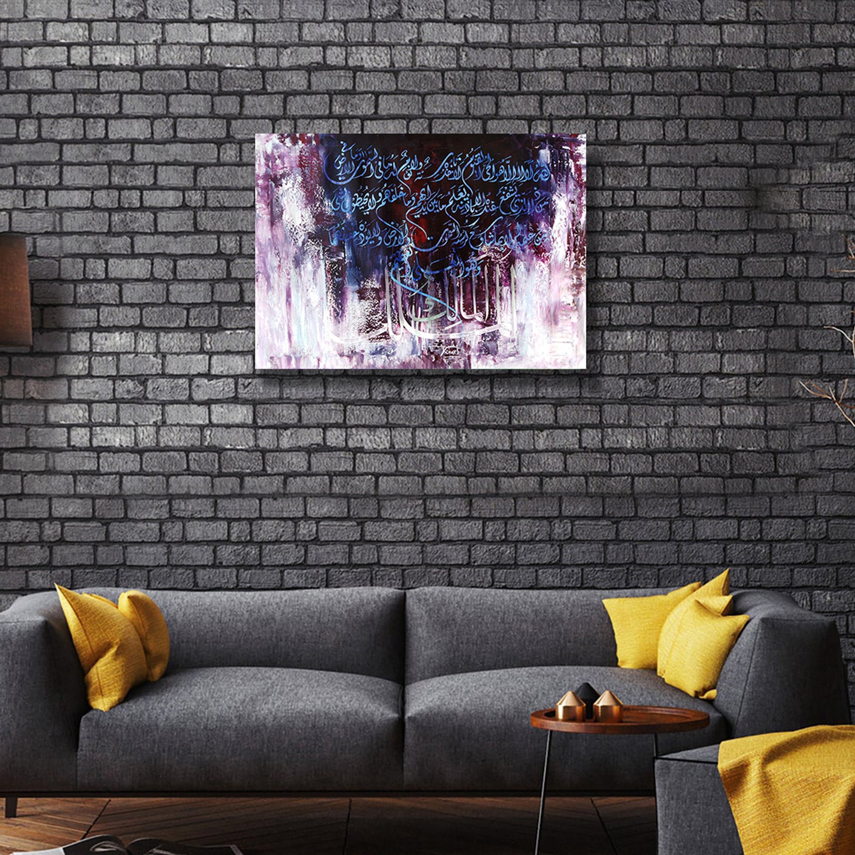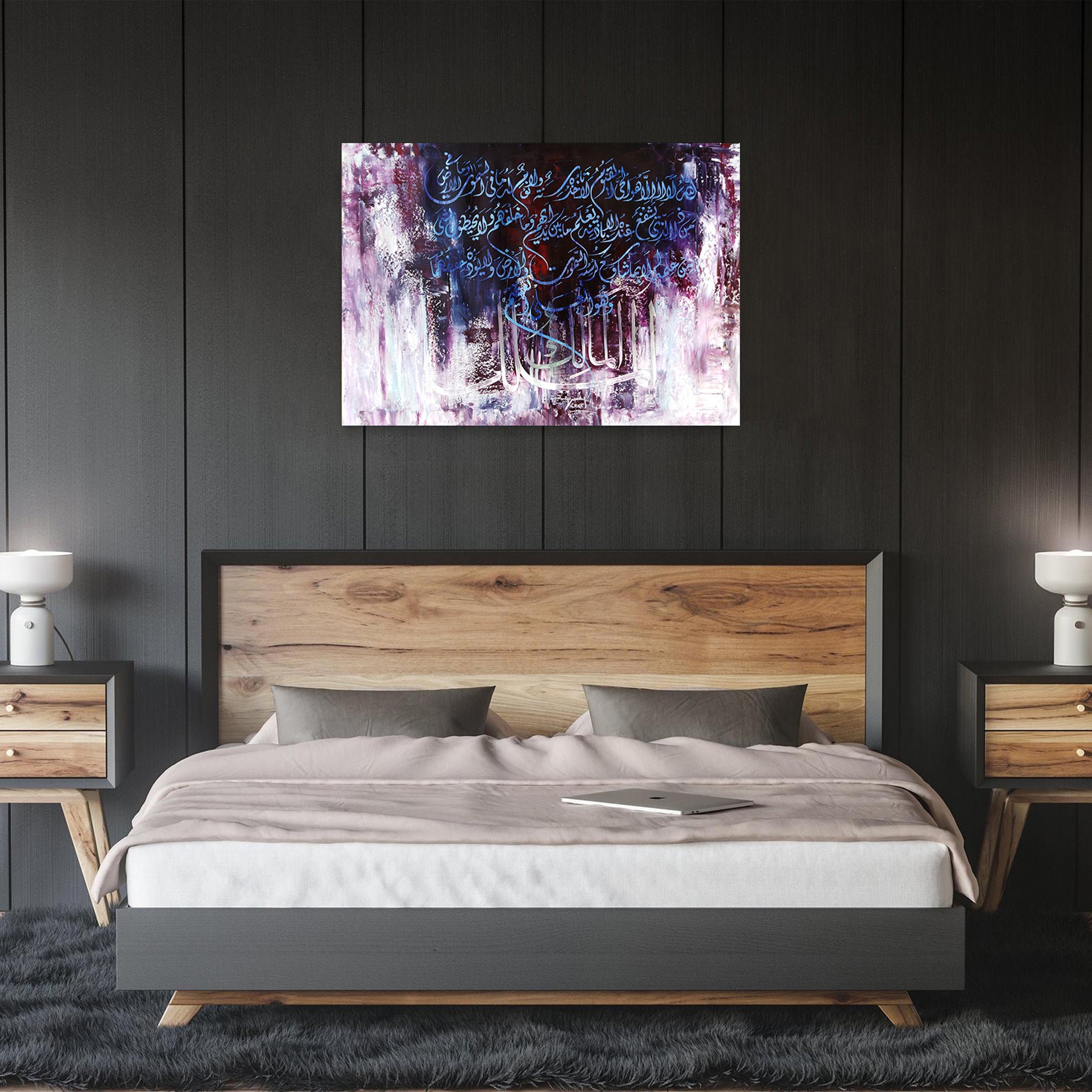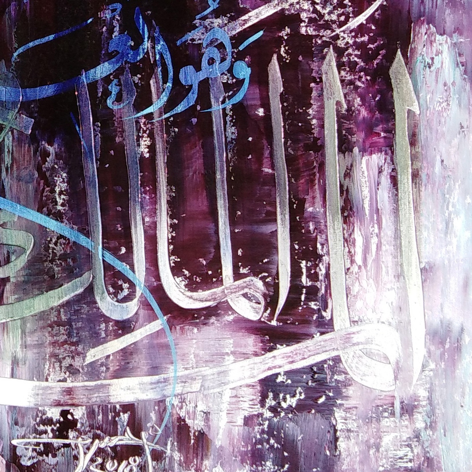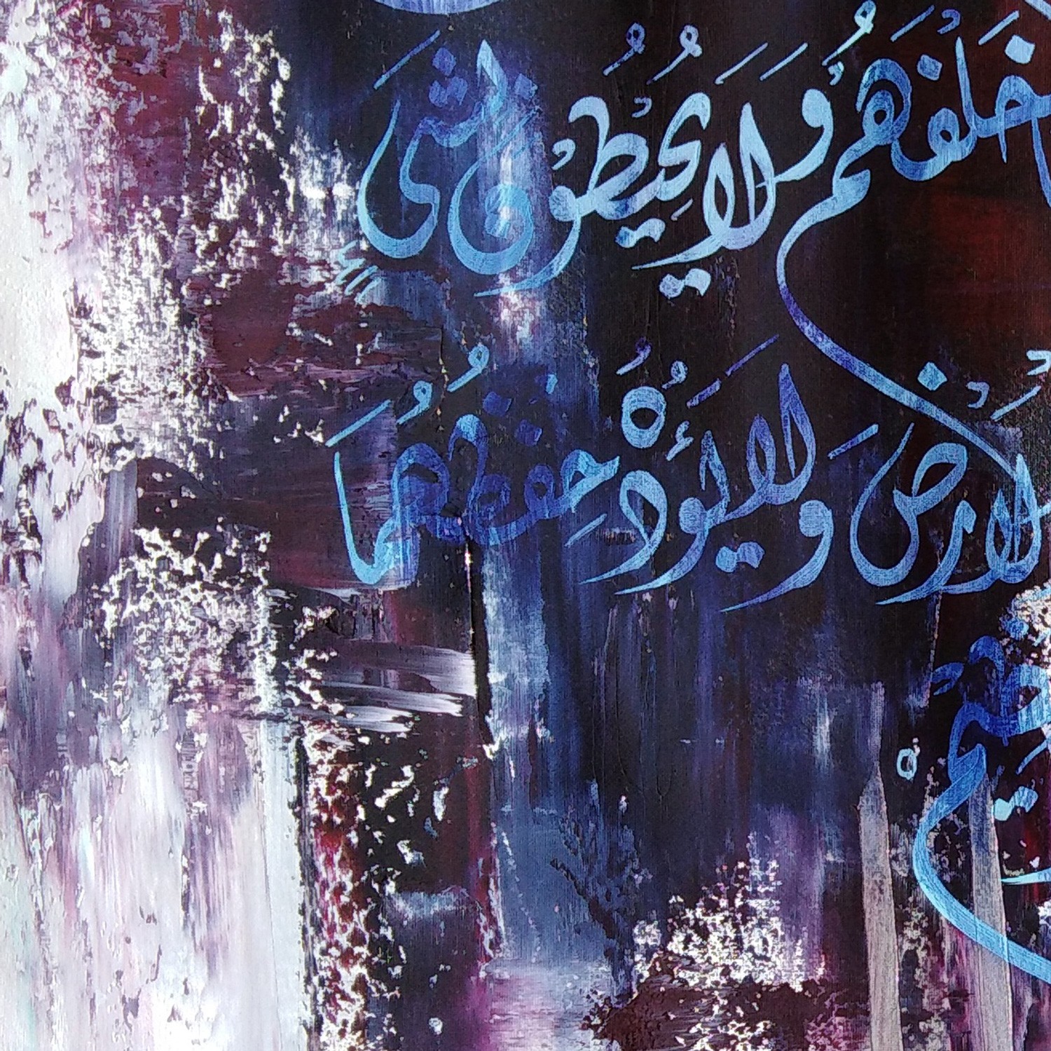 The verse corresponds in English as follows: ‘Allah! there is no Allah but He – the living, the Self-subsisting, Eternal. No slumber can seize him nor sleep. His are all things in the heavens and on earth. Who is there can intercede in His presence except as He permitted? He knoweth what (appeareth to His creatures as) Before or After or Behind them. Nor shall they compass aught of His knowledge except as He willeth. His Throne doth extend over the heavens and the earth, and He feeleth no fatigue in guarding and preserving them. He is the Highest, the Supreme (in glory).’