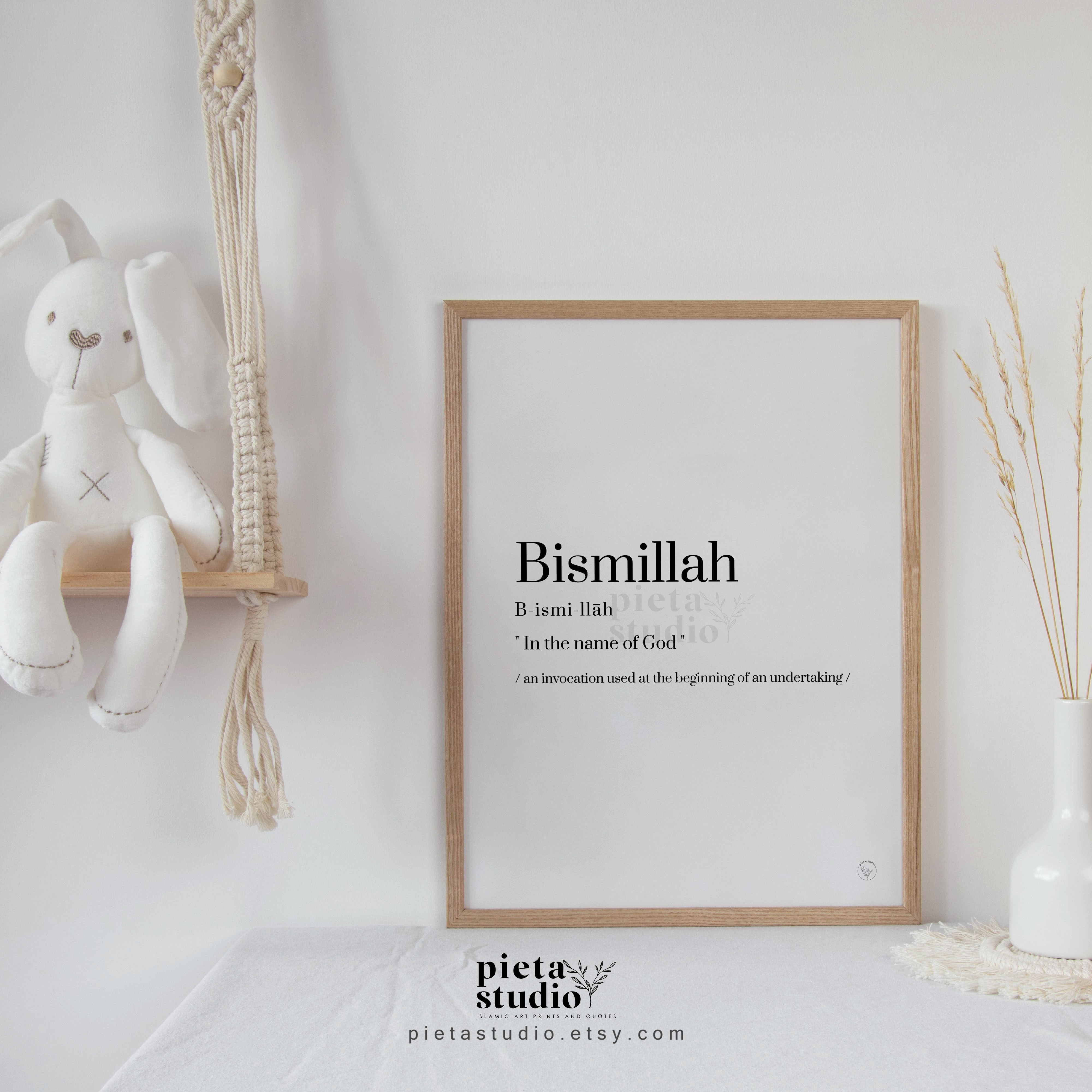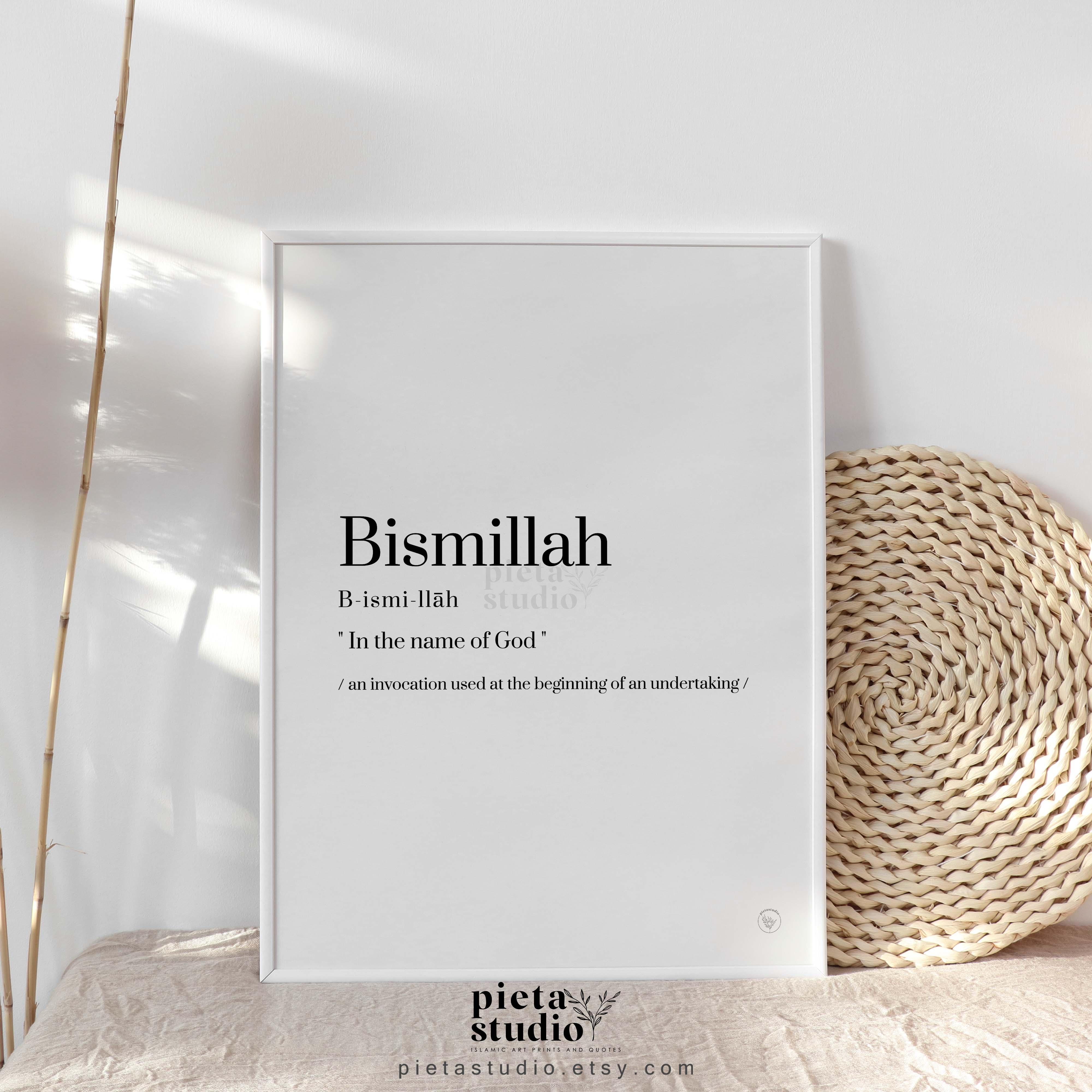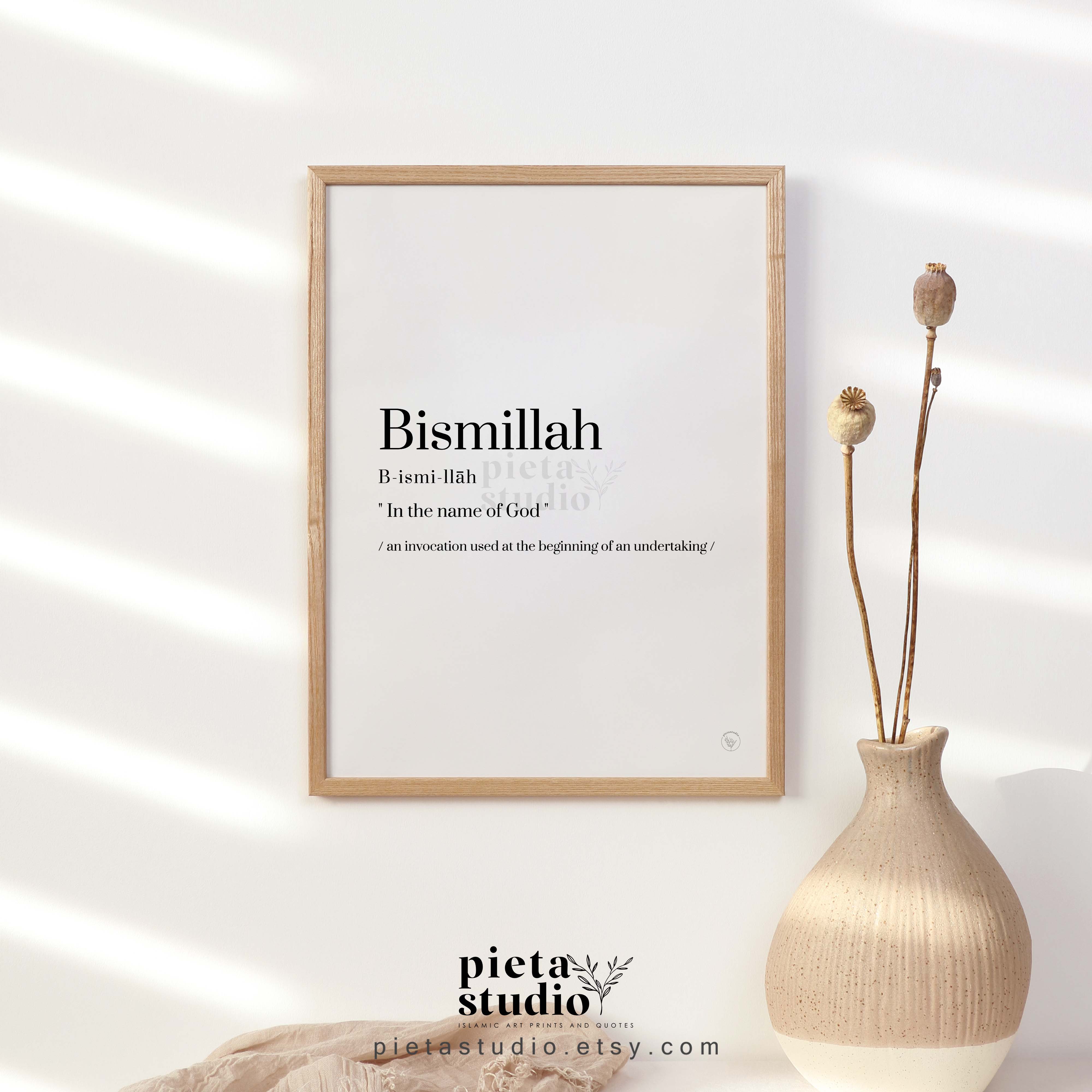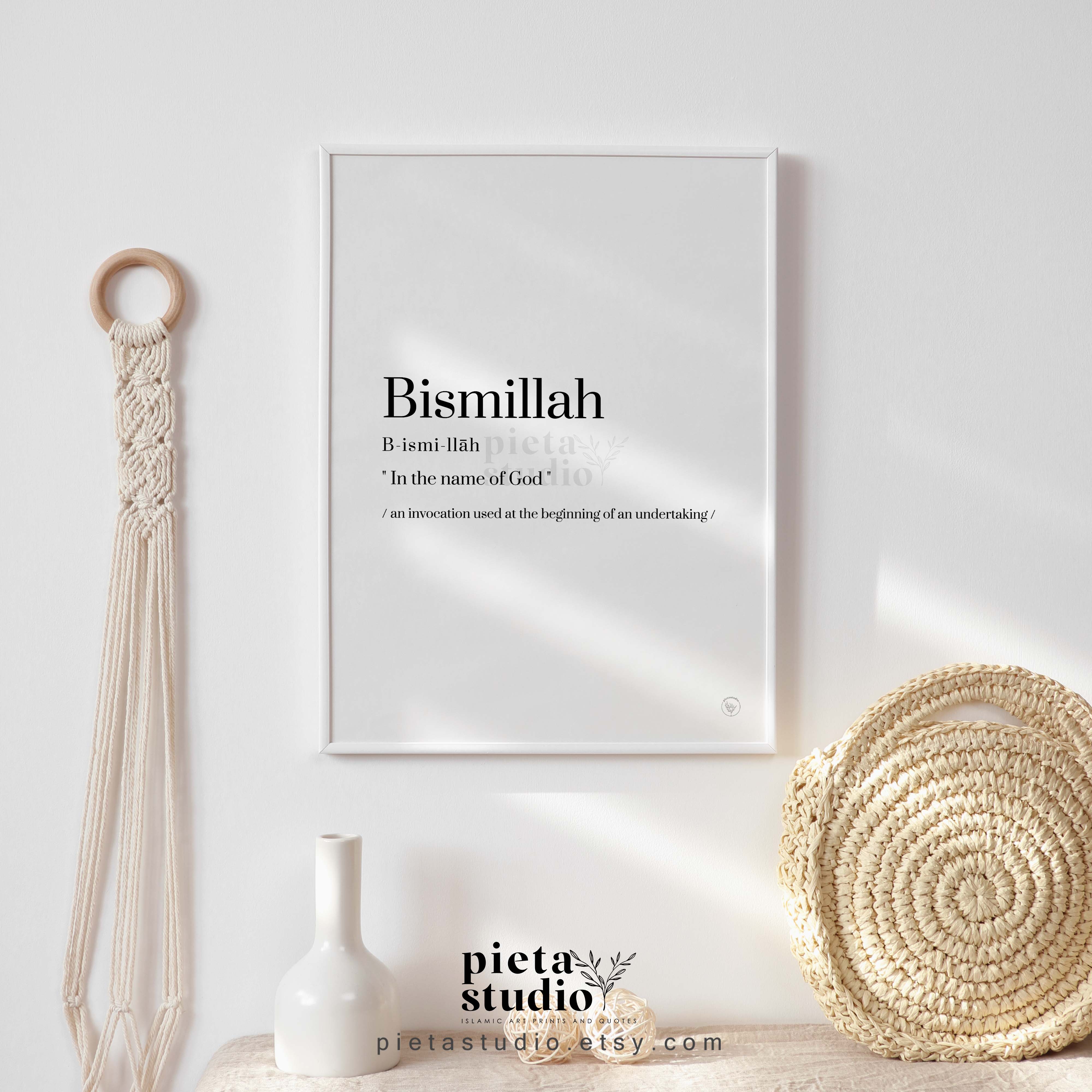 Beautiful Islamic quote wall art of Bismillah. Decorate your home and brighten up your daily life with this Islamic quote wall art. Available in instant download you could print by yourself or your preference print store