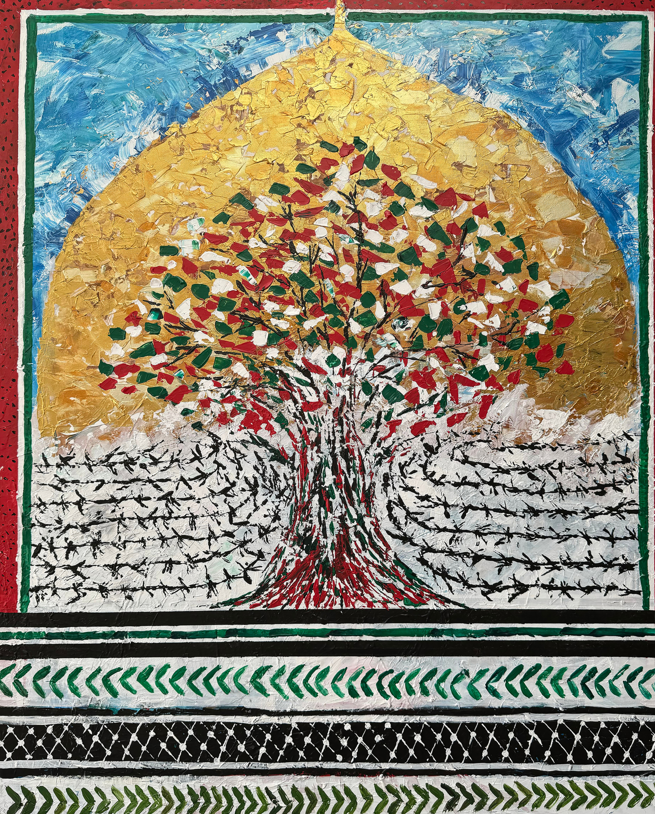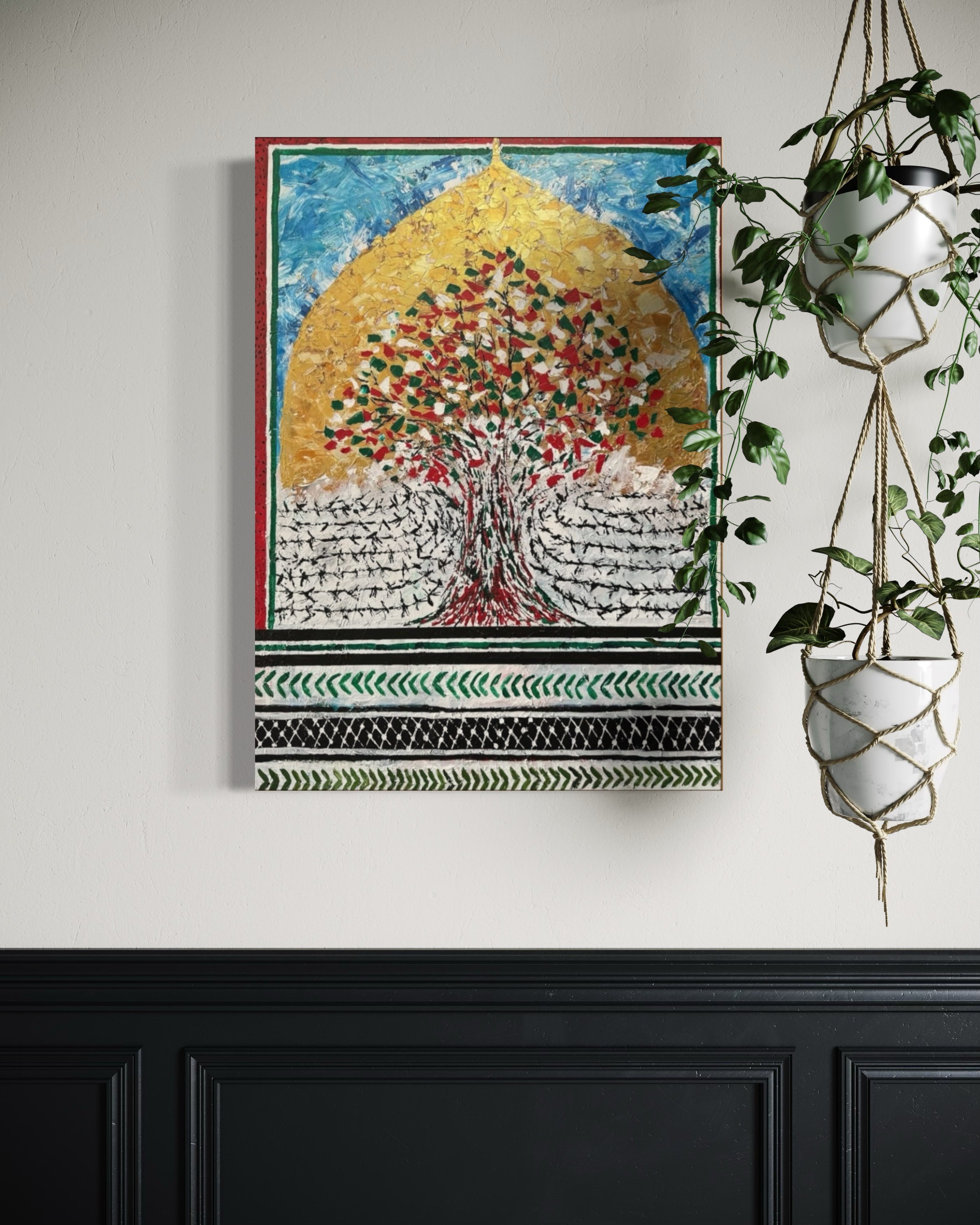 “Sumud” is a poignant depiction of Palestinian resilience and steadfastness amidst adversity. The painting captures the essence of the Palestinian struggle, portraying a landscape scarred by conflict yet infused with hope. It conveys the unwavering determination of the Palestinian people to endure and thrive in the face of oppression. “Sumud” serves as a powerful reminder of the resilience and perseverance ingrained in Palestinian culture and history. Our fine art prints are on museum-quality, pure cotton paper, ensuring vibrant colors and precise details. Enjoy an unparalleled visual experience with our high-end art prints, worthy of the finest museums.