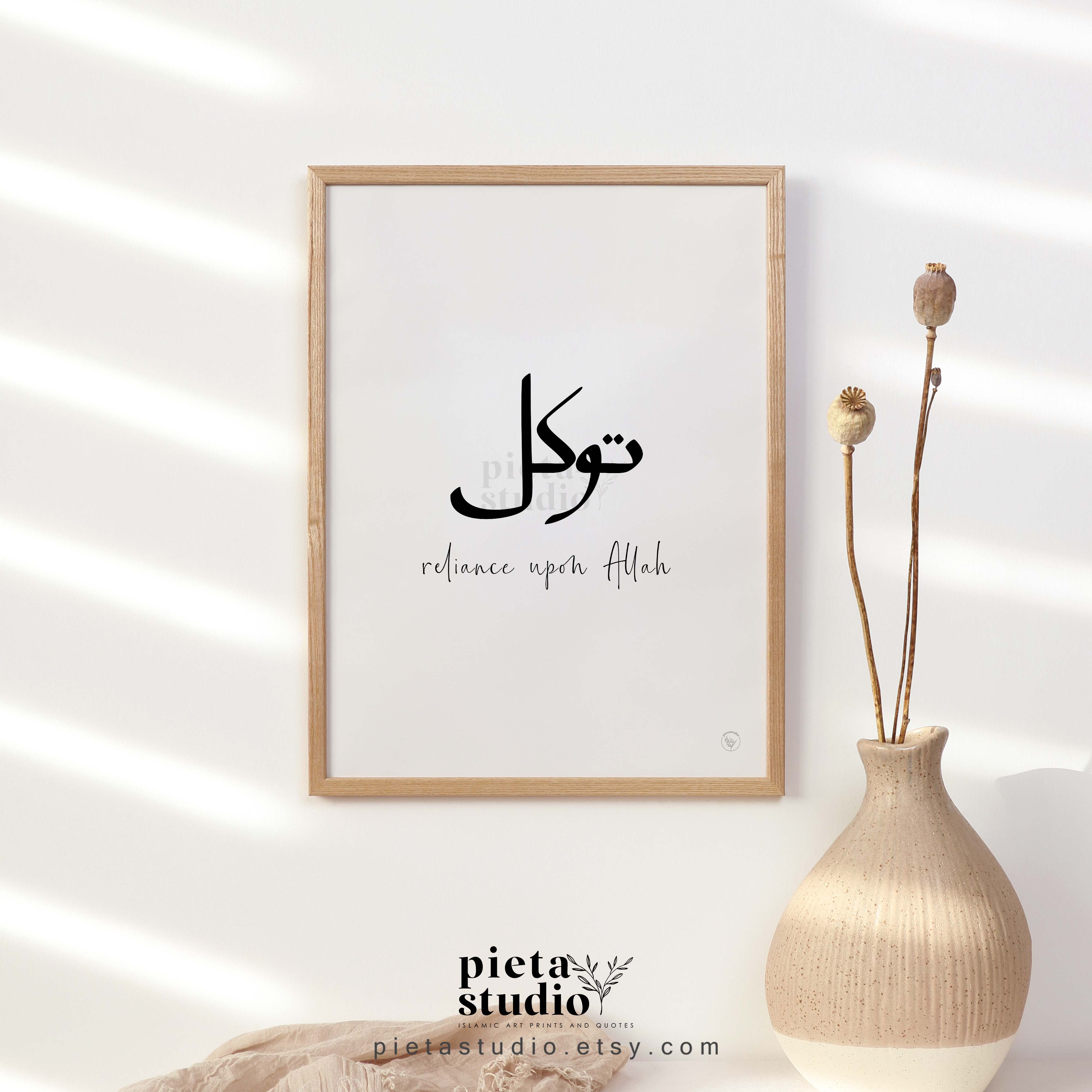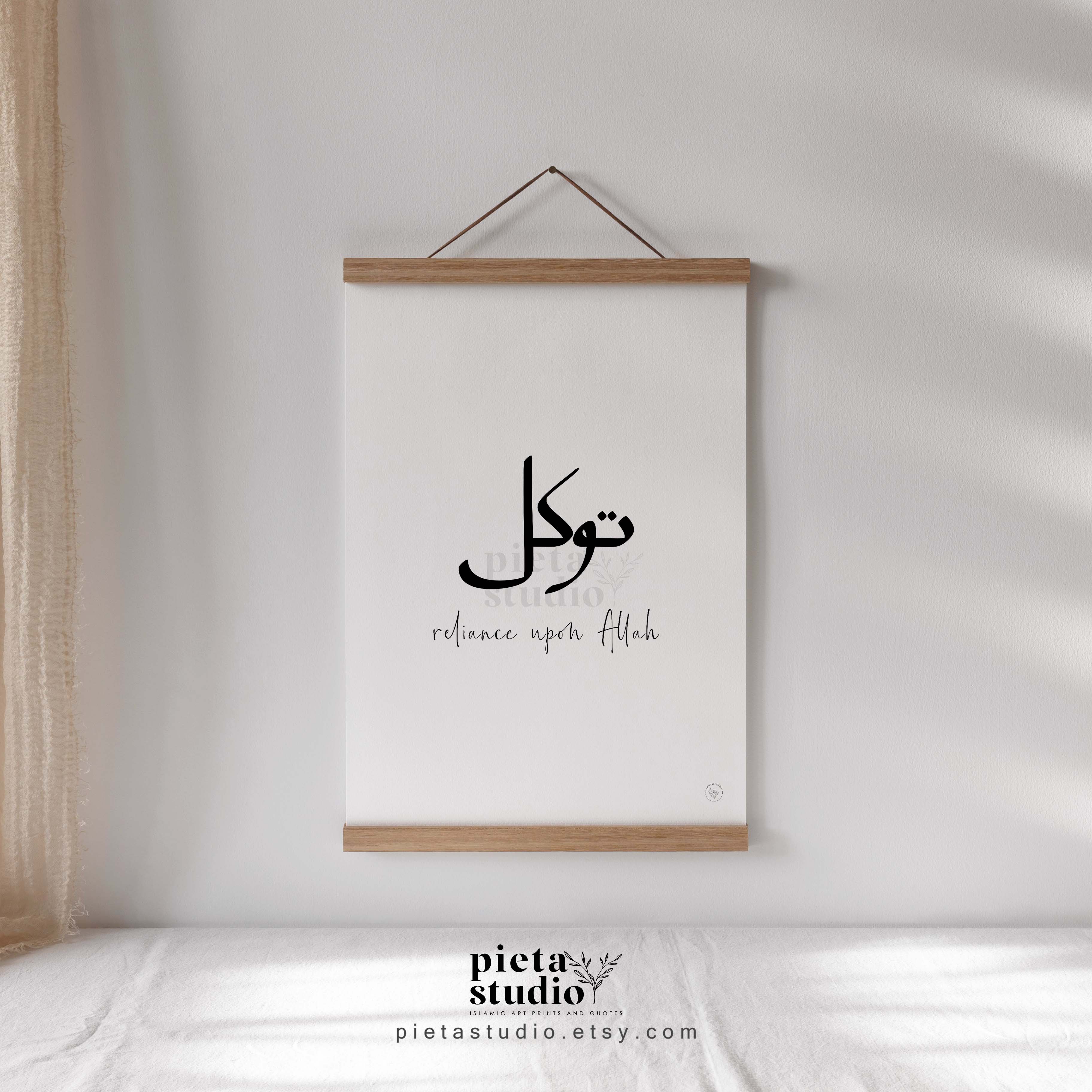 Beautiful Islamic calligraphy wall art of tawakkul Arabic calligraphy quotes poster. An Islamic reminder and also modern minimalist home decor to decorate your home and daily life with this Islamic calligraphy wall art. Available in instant download you could print by yourself or your preference print store