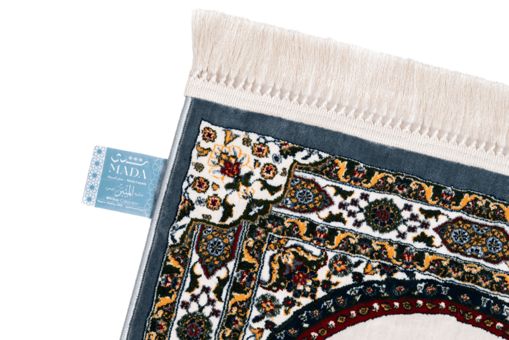 Expertly crafted by Mada Carpets in the Madinah province of Saudi Arabia, this piece is more than a prayer rug—it’s a symbol of direction, devotion, and sacred connection.