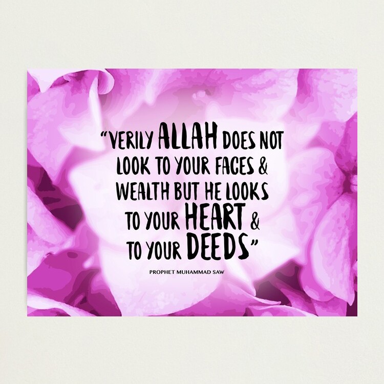 Prophet Muhammad SAW said "Verily Allah does not look to your faces & wealth but he looks to your Heart & to your Deeds." a quote found in the Sahih Muslim (Hadith)