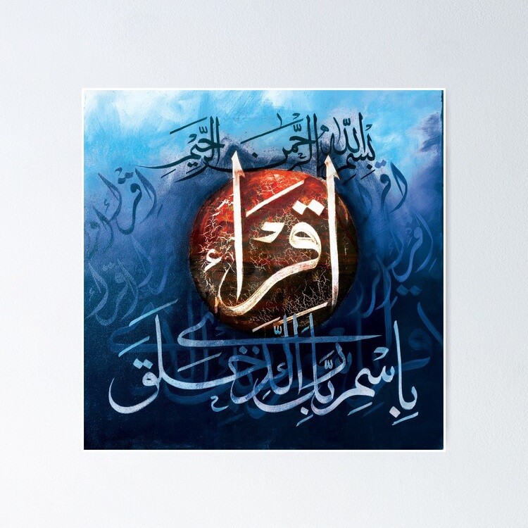 “Iqra Bismi Rabbika Alladhi Khalaq” اقْرَأْ بِاسْمِ رَبِّكَ الَّذِي خَلَق َwhich translates to “Recite in the name of your Lord who created” from Surah Alaq. A powerful phrase to remember one’s creator.