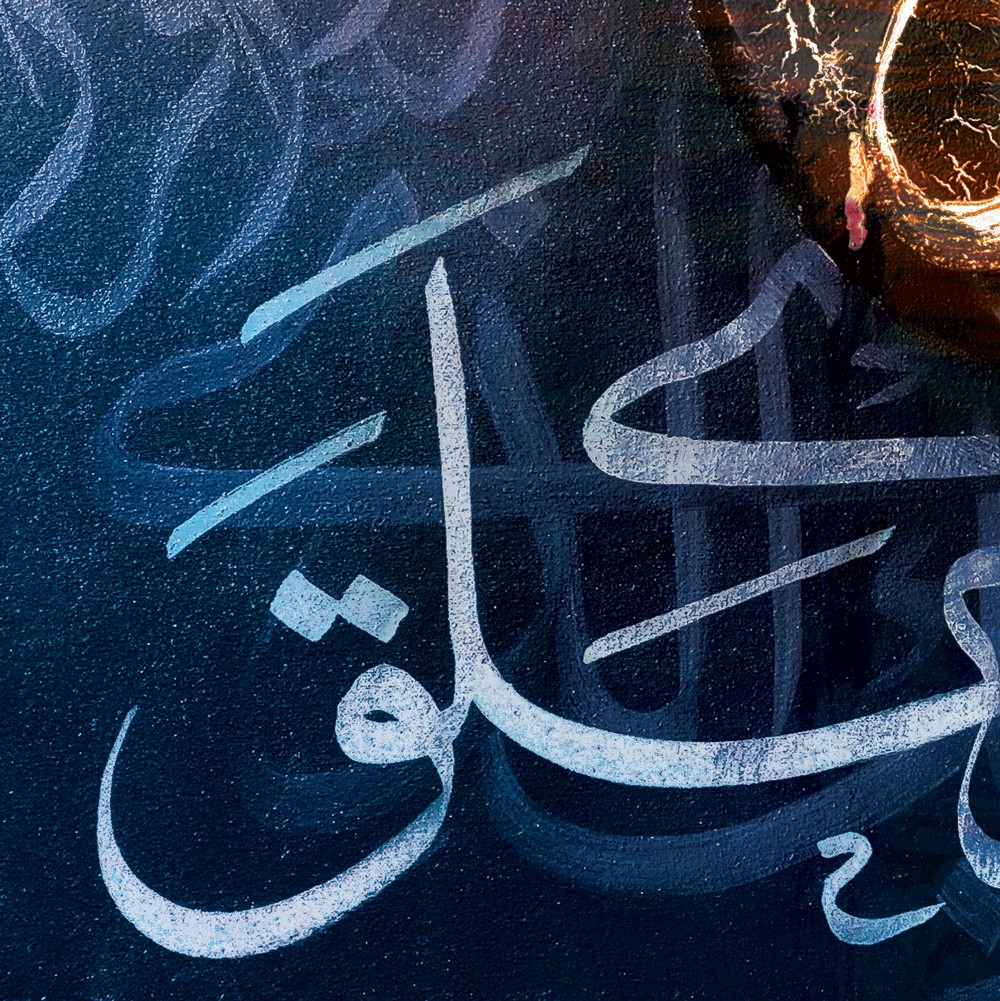 “Iqra Bismi Rabbika Alladhi Khalaq” اقْرَأْ بِاسْمِ رَبِّكَ الَّذِي خَلَق َwhich translates to “Recite in the name of your Lord who created” from Surah Alaq. A powerful phrase to remember one’s creator.