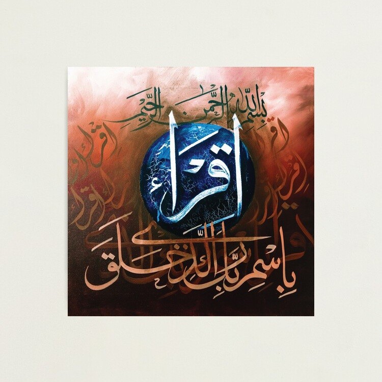 “Iqra Bismi Rabbika Alladhi Khalaq” اقْرَأْ بِاسْمِ رَبِّكَ الَّذِي خَلَق َwhich translates to “Recite in the name of your Lord who created” from Surah Alaq. A powerful phrase to remember one’s creator.