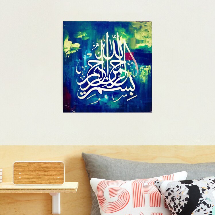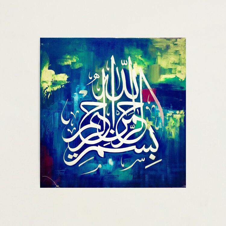 Bismillah-ir-Rahman-ir-Rahim - Poster Print - Islamic Art - Islamic Decor - Islamic Calligraphy Wall Art - Islamic Home - Blue