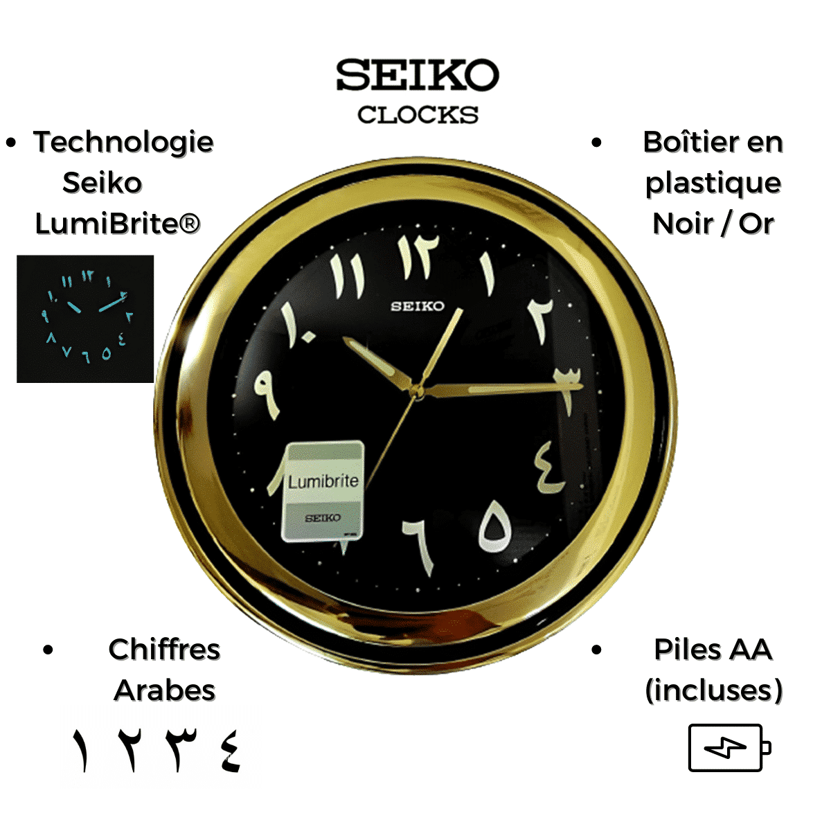 His numbers arabs distinctive features provide cultural authenticity, while benefiting from the Seiko watch technology. This clock is equipped with technology Seiko LumiBrite® which ensures a readability optimal in low light conditions thanks to its numbers luminescent.