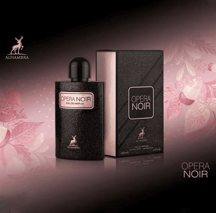 Opera Noir Eau De Parfum by Maison Alhambra / Lattafa is a captivating floral gourmand scent twisted with an overdose of black coffee for a shot of adrenaline. Energy, sensuality, coupled with that unique edge. The signature black coffee accord is paired with sensual vanilla, enriched by the softness of white flowers and orange blossom, against a base of patchouli and comforting white musk. A daring contrast of light and dark for a women’s fragrance that bewitches with its trail.