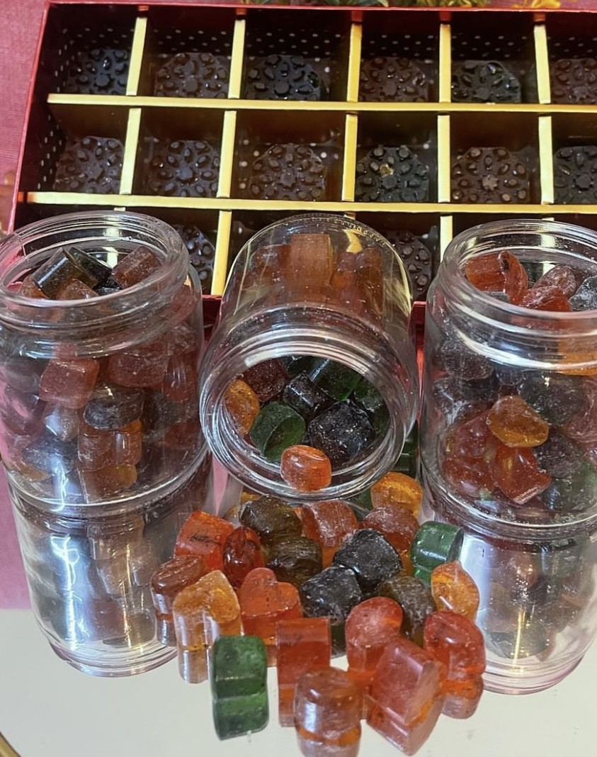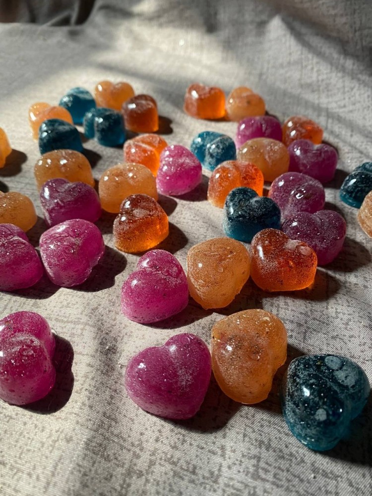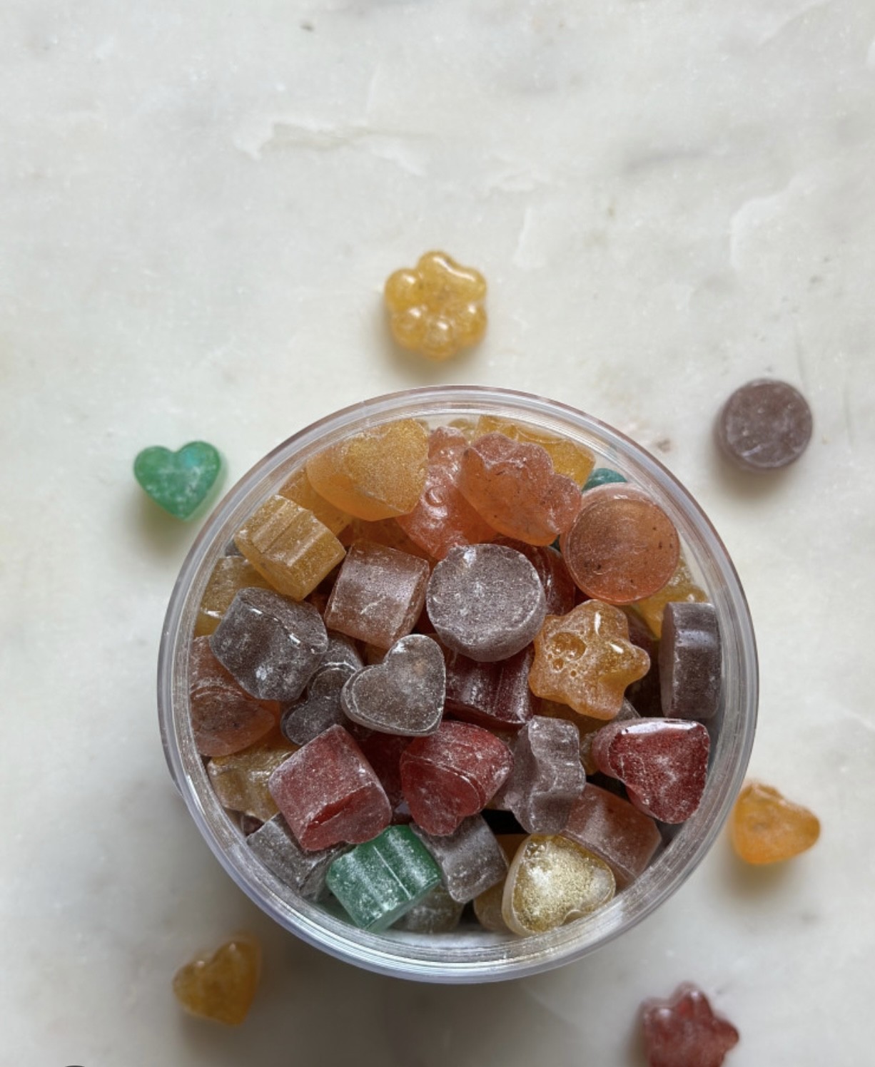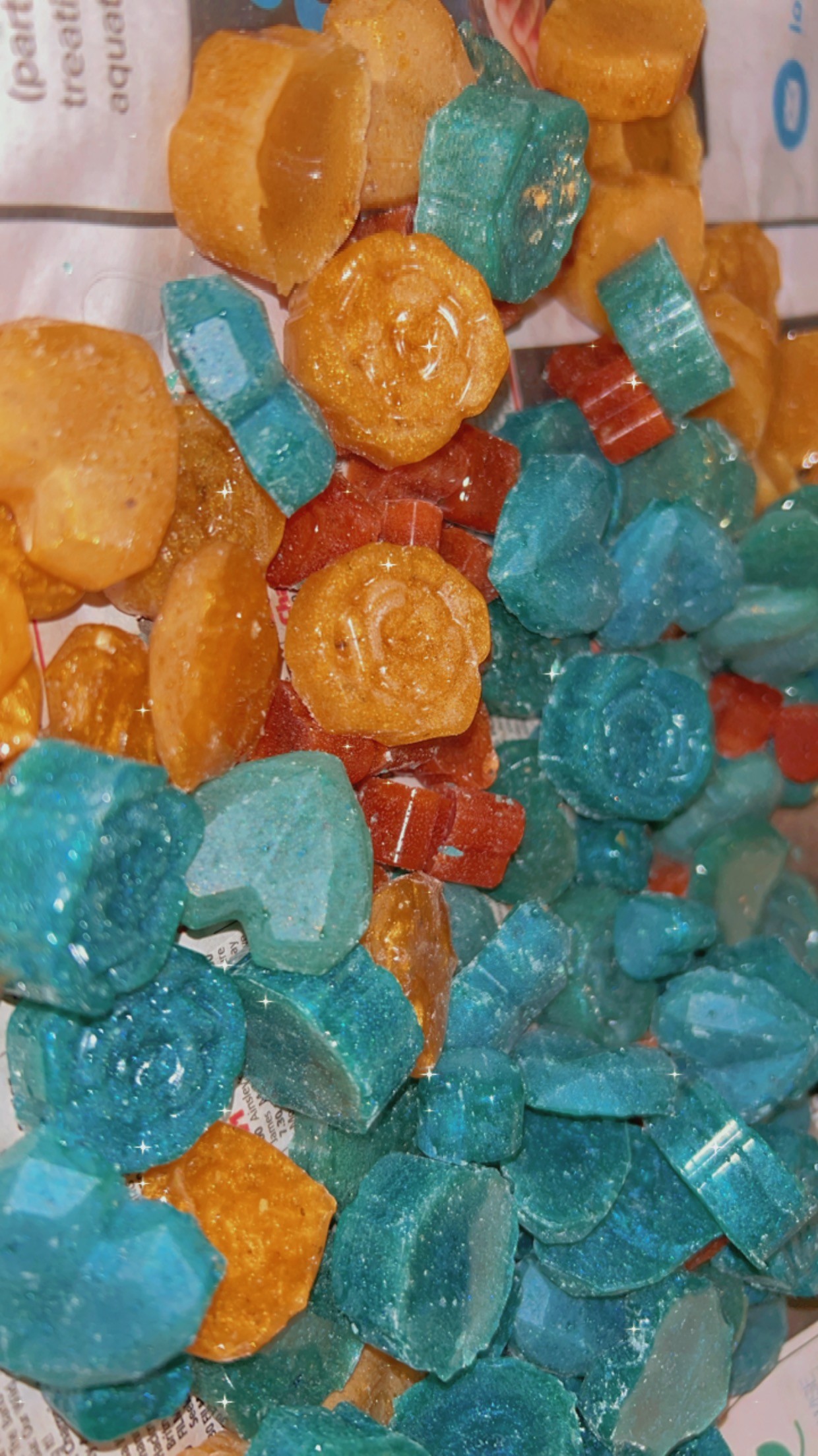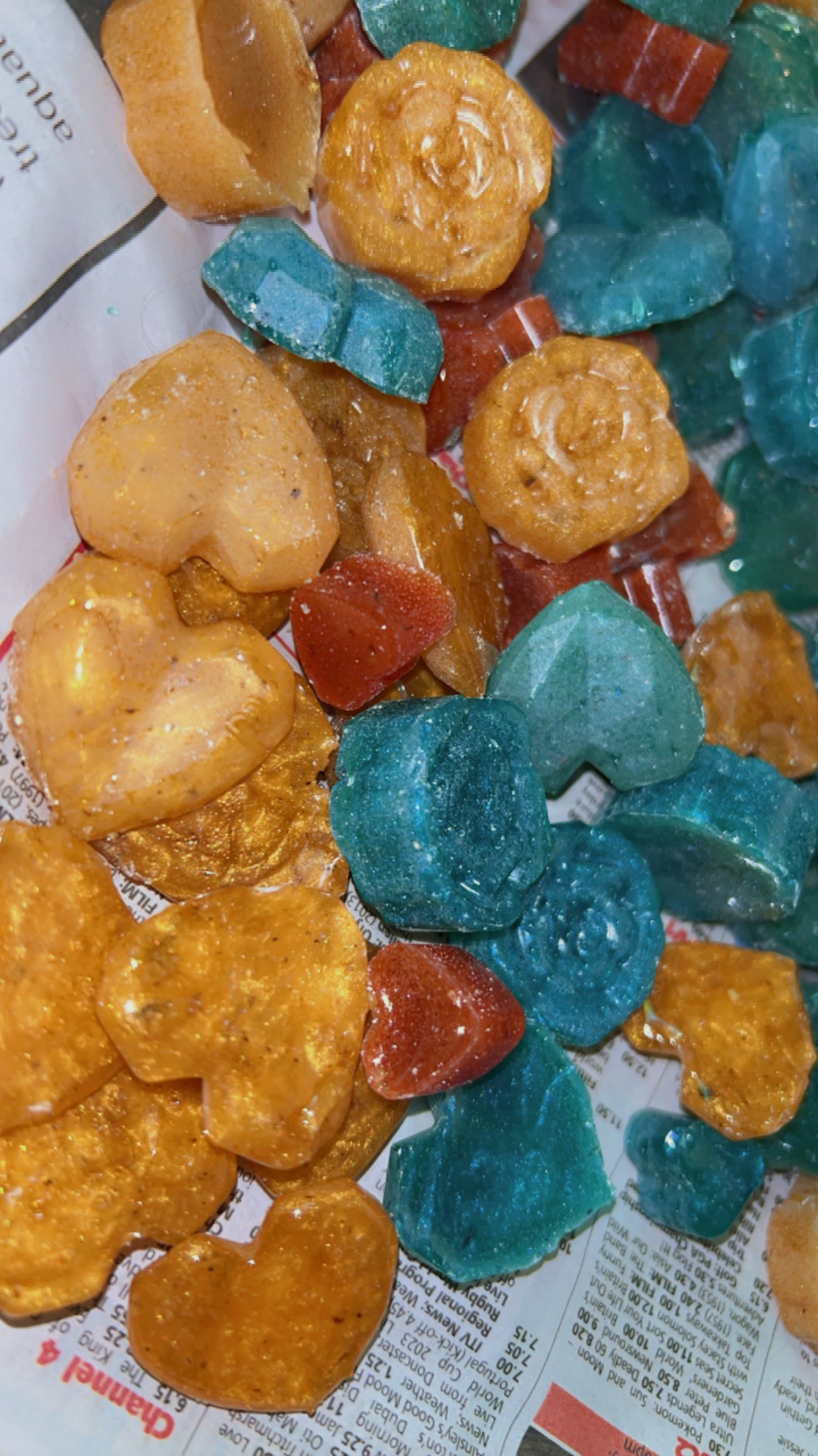 A box contains about 25 pieces. Colours and shapes can be customised to liking.