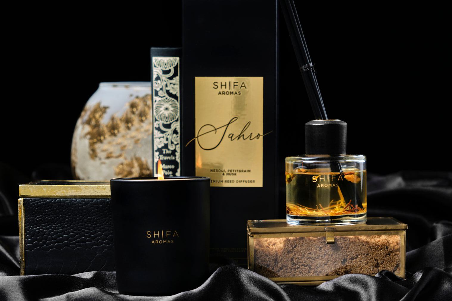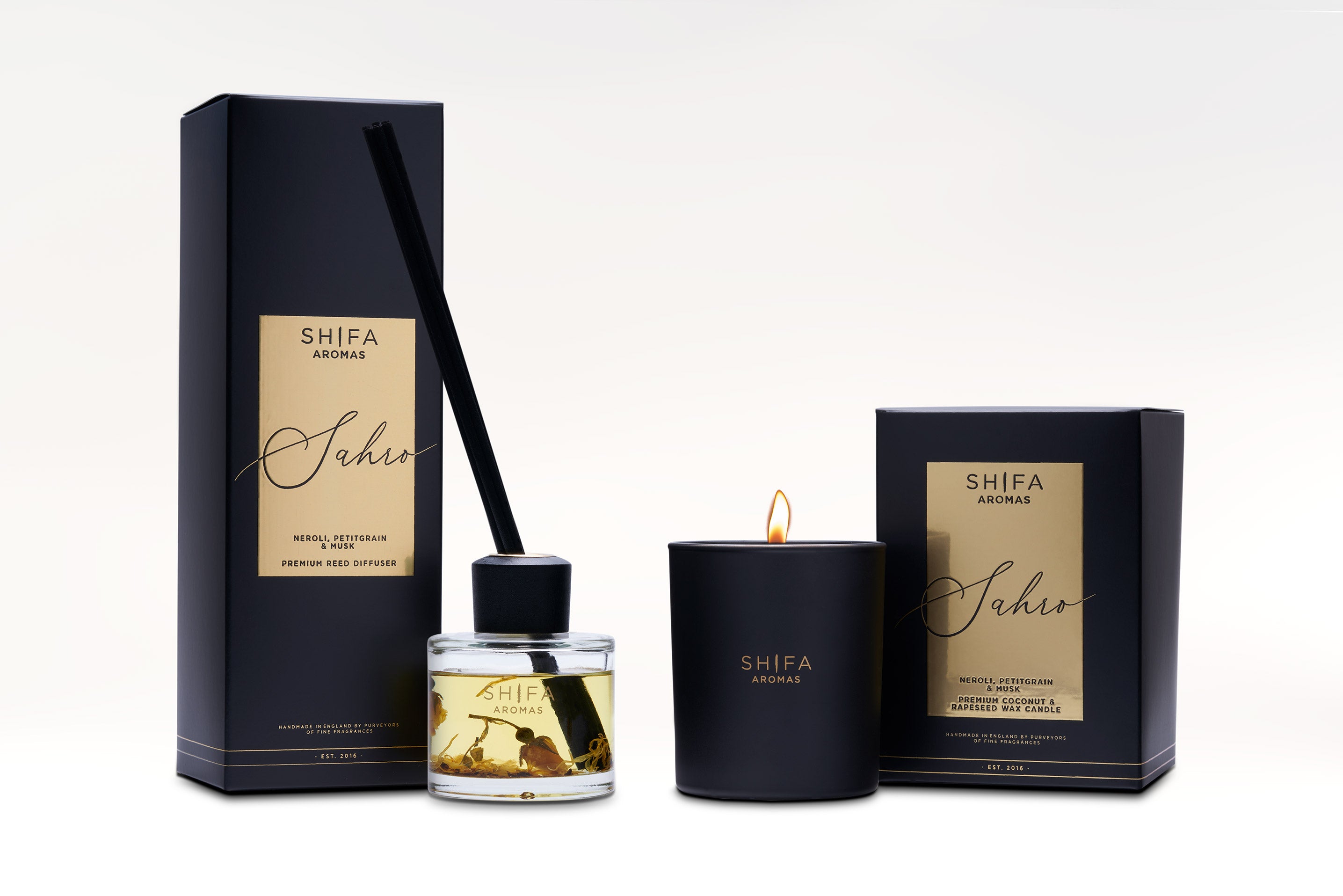 The candle & diffuser are packaged in a Satin Silk pouch to add a touch of luxury.
