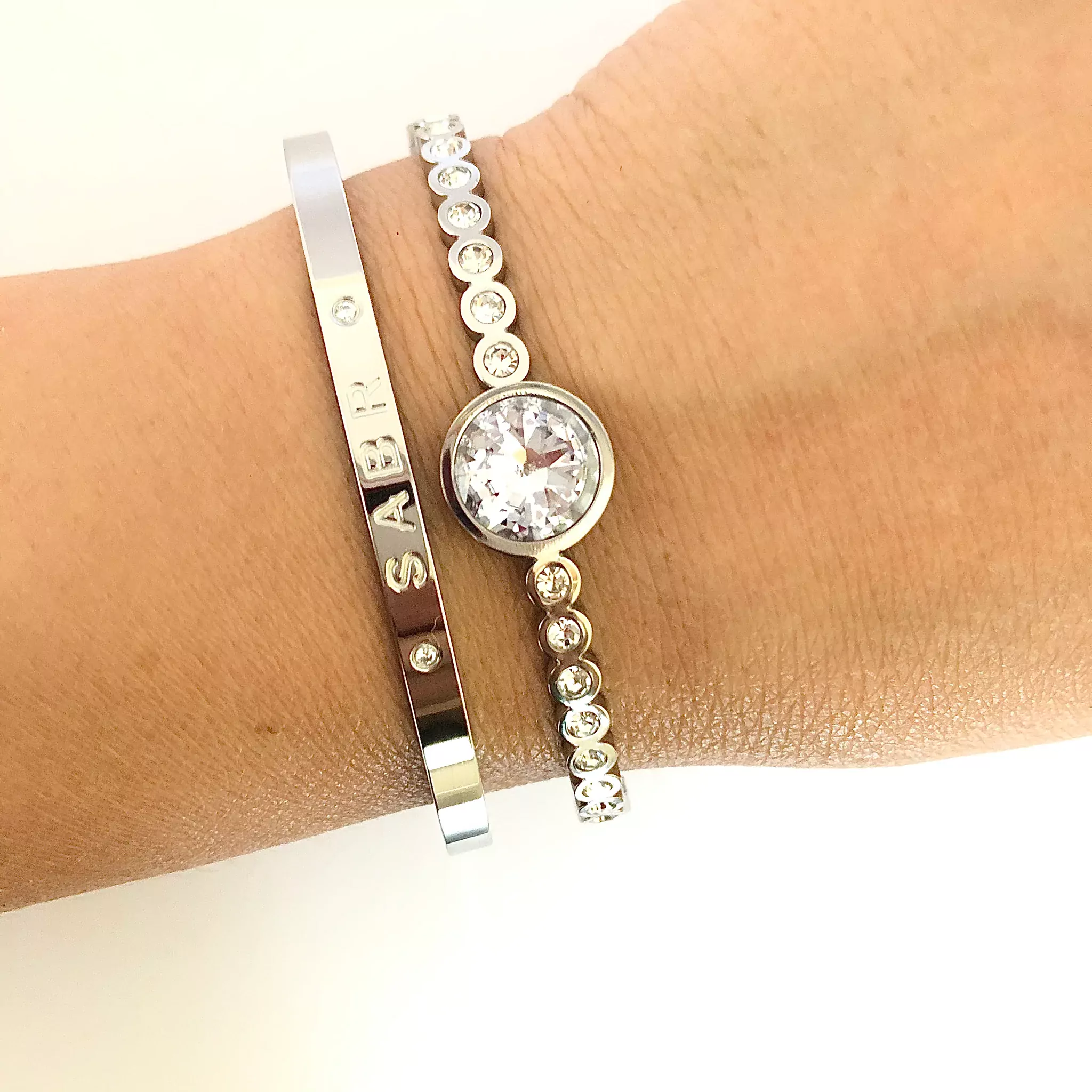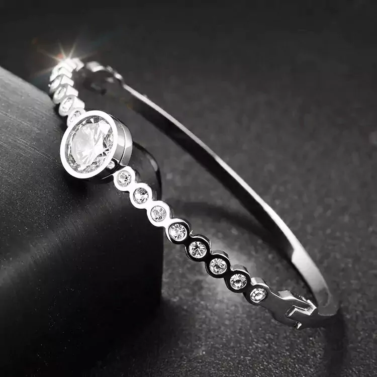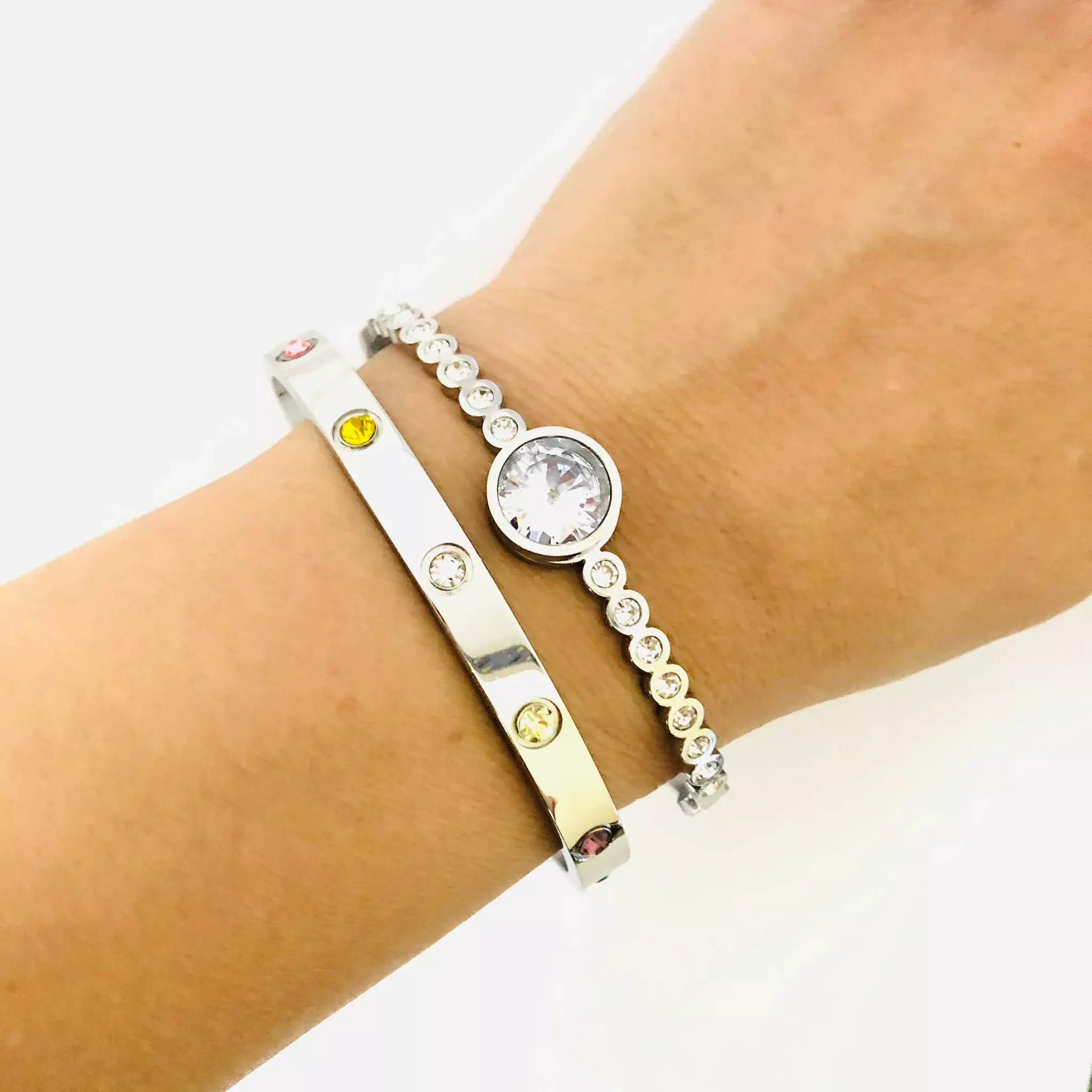 Each Cubic Zirconia stone radiates with flashes of fire as the bangle moves around on the wrist. Cubic Zirconia is second only to diamonds for sparkle and durability but is far more affordable.