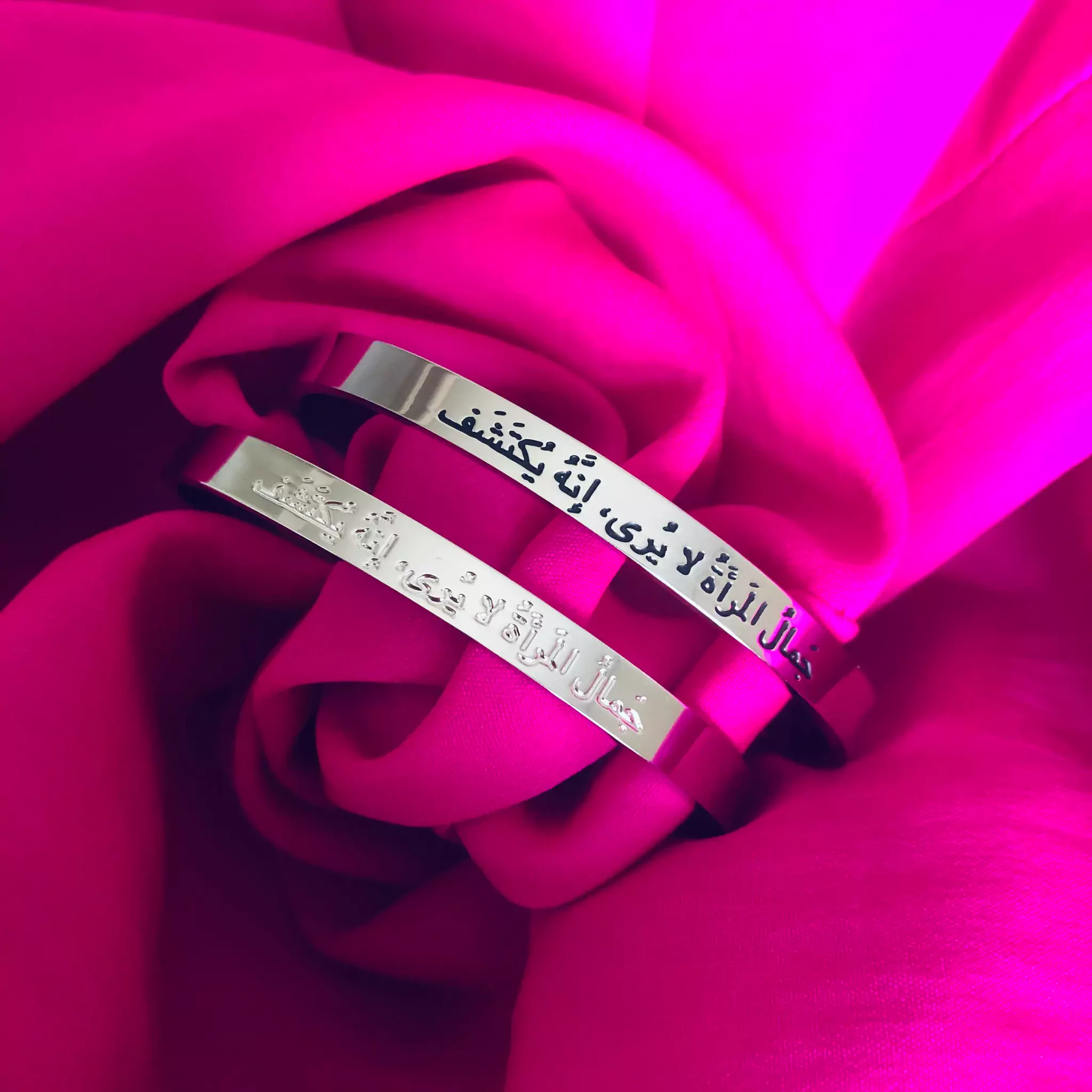 The bangle is engraved with the inscription in Arabic on the outside and English on the inside making this a truly unique and meaningful piece of jewellery.