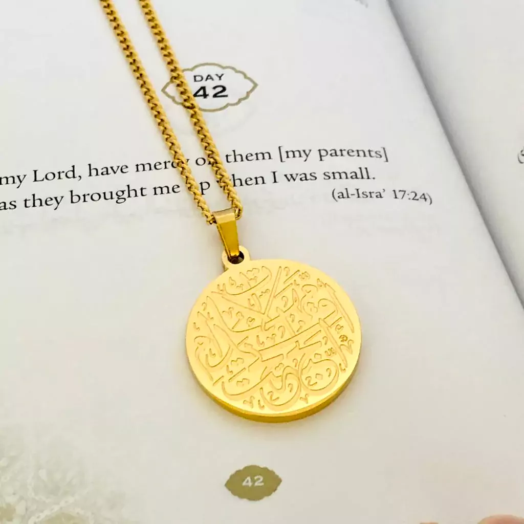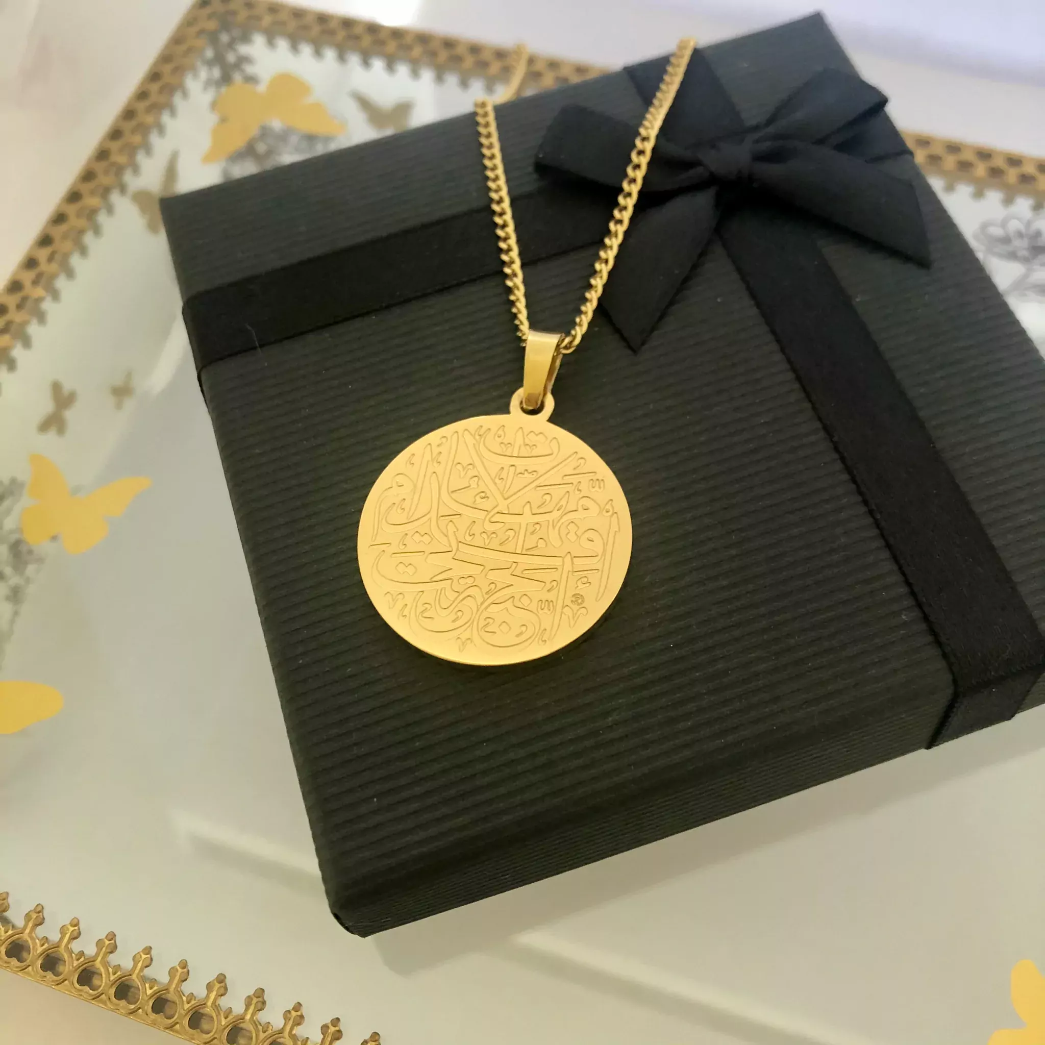 Our rich, intricate calligraphy necklace is engraved with “Paradise is under the feet of mothers” in Arabic which is from an authentic hadith* attributed to Prophet Muhammad (peace and blessings of Allah be upon him).