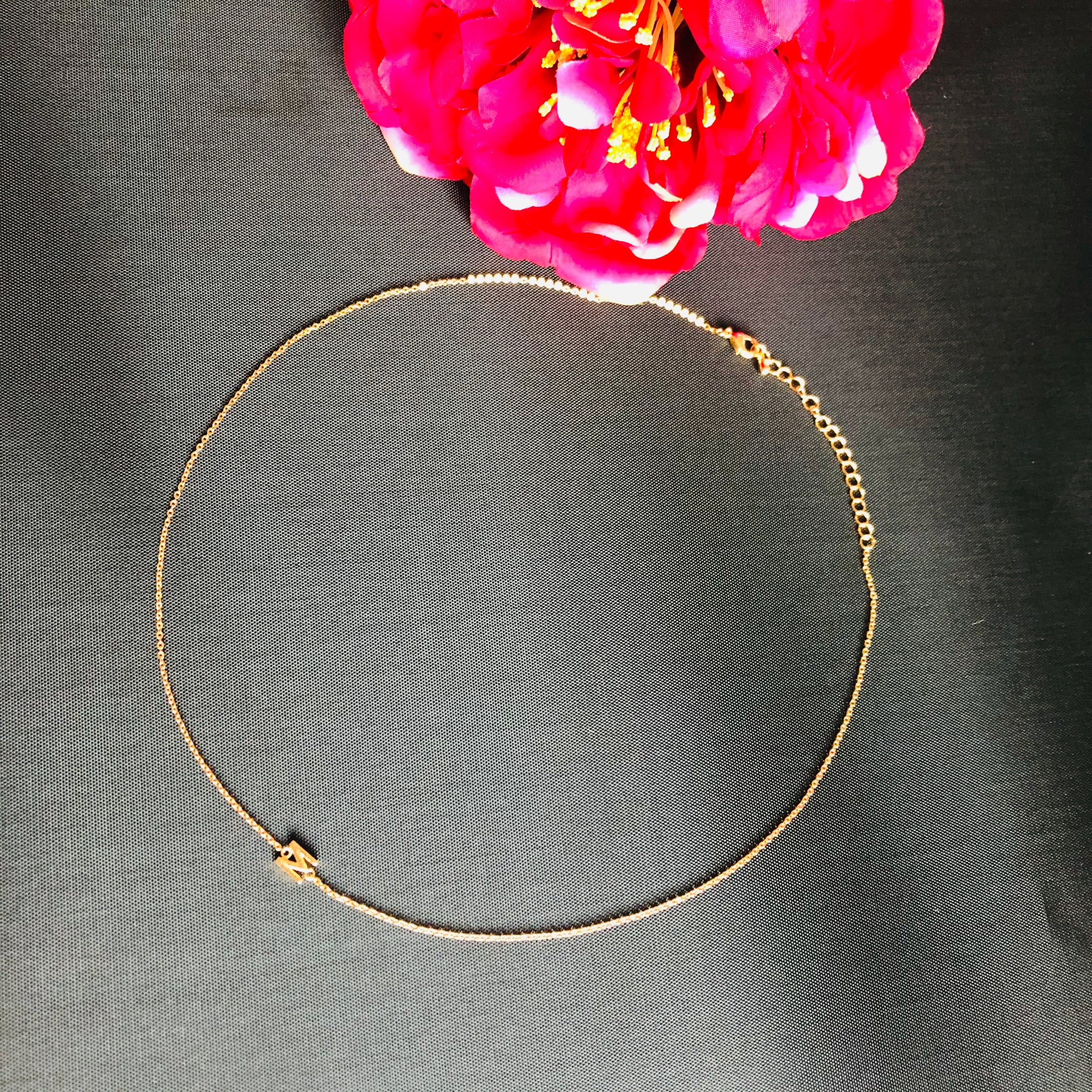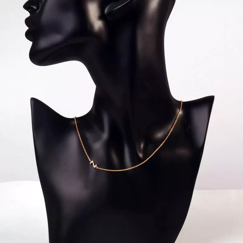 This is a delicate and luxurious little necklet made from 18K Rolled Gold. What makes it unique is that the initial hangs fashionably on the side rather than at the bottom and the initial can be worn either on the left or the right side of the neckline.