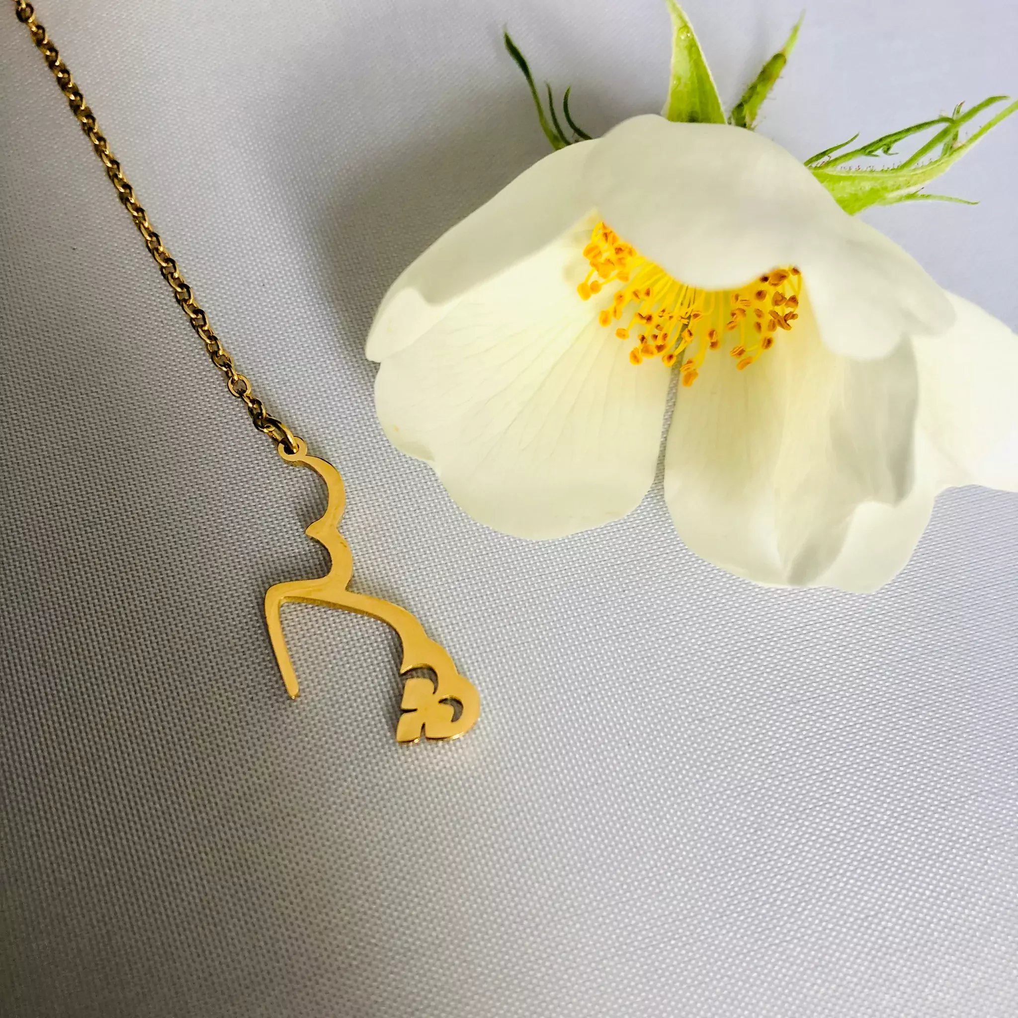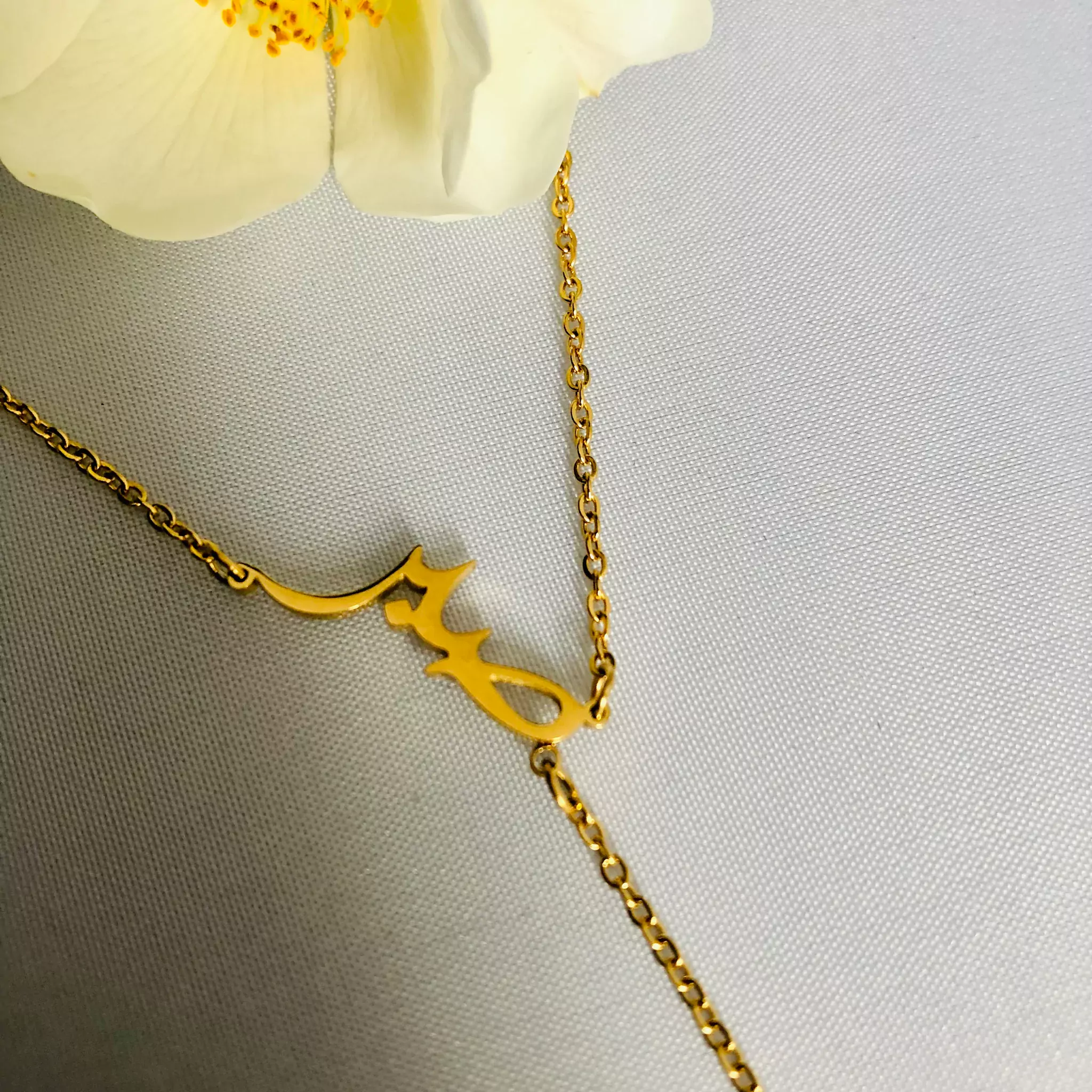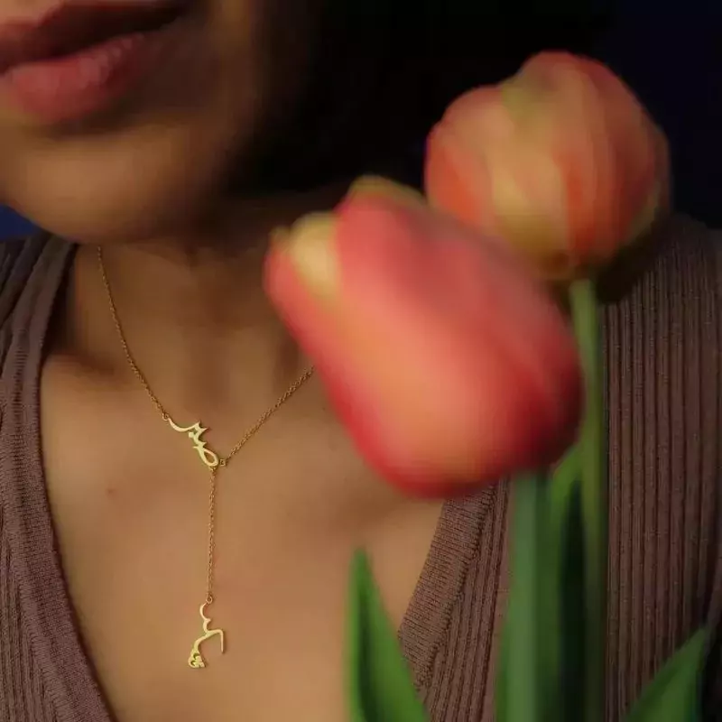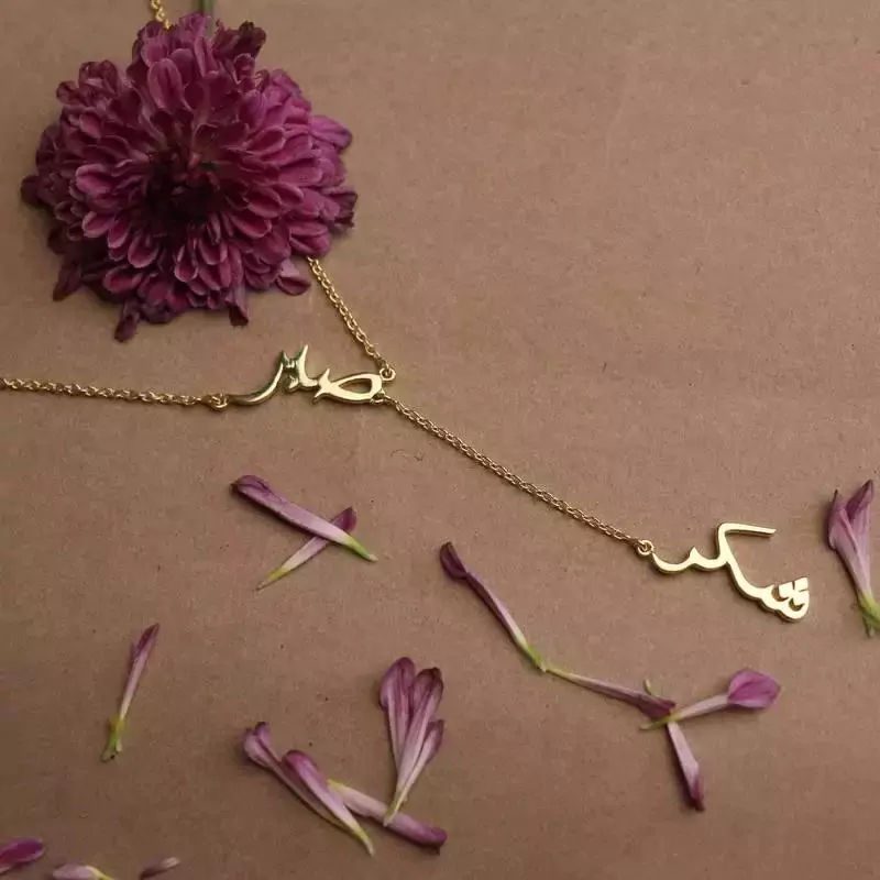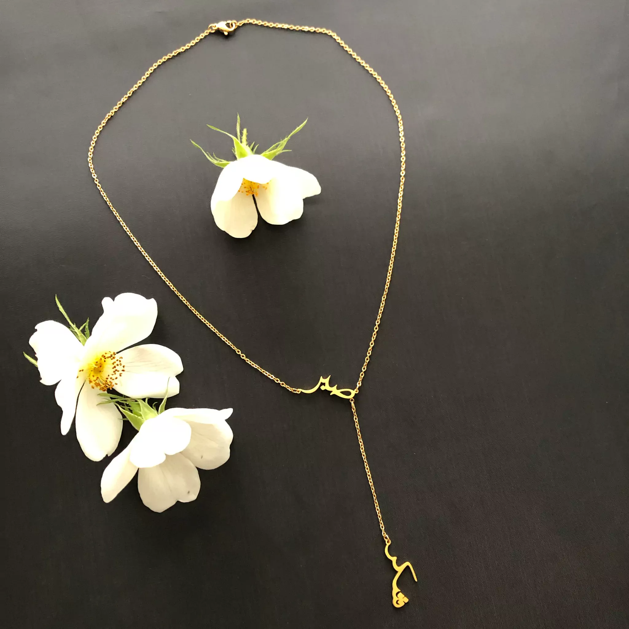 Our unique lariat necklace, the first lariat in our Collection, has the words Sabr and Shukr delicately carved in Arabic with the word Shukr falling at the end of the lariat. The word Sabr rests gently around the collarbone area and gives this stunning piece its signature name 'Sabrin' which means patience in Arabic and is also a girl's name.