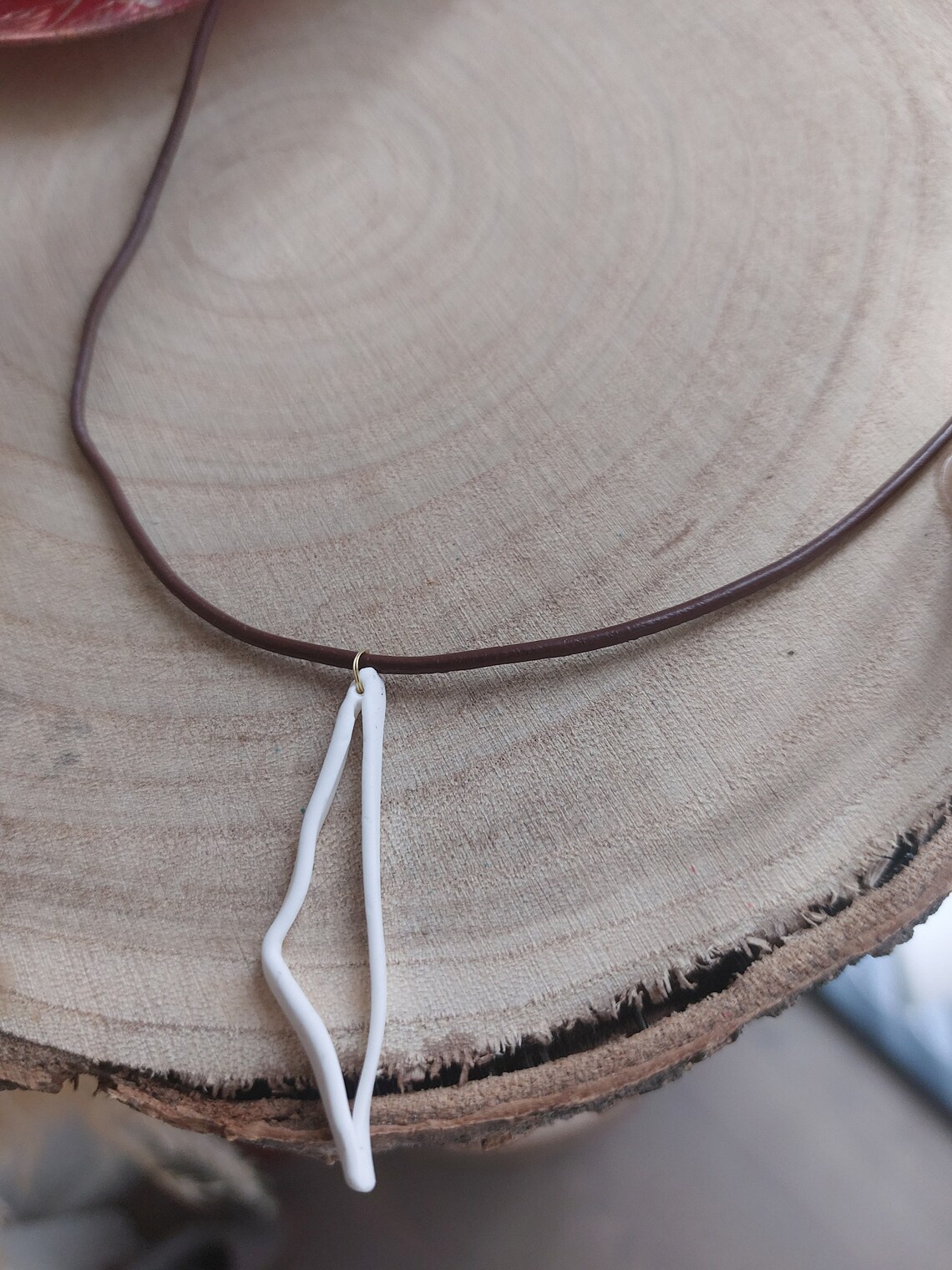 Hand-made clay Palestinian map leather necklace