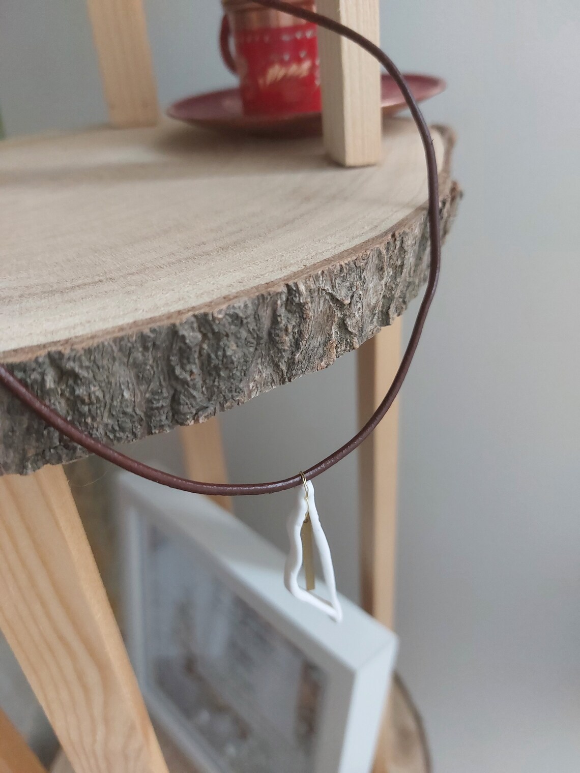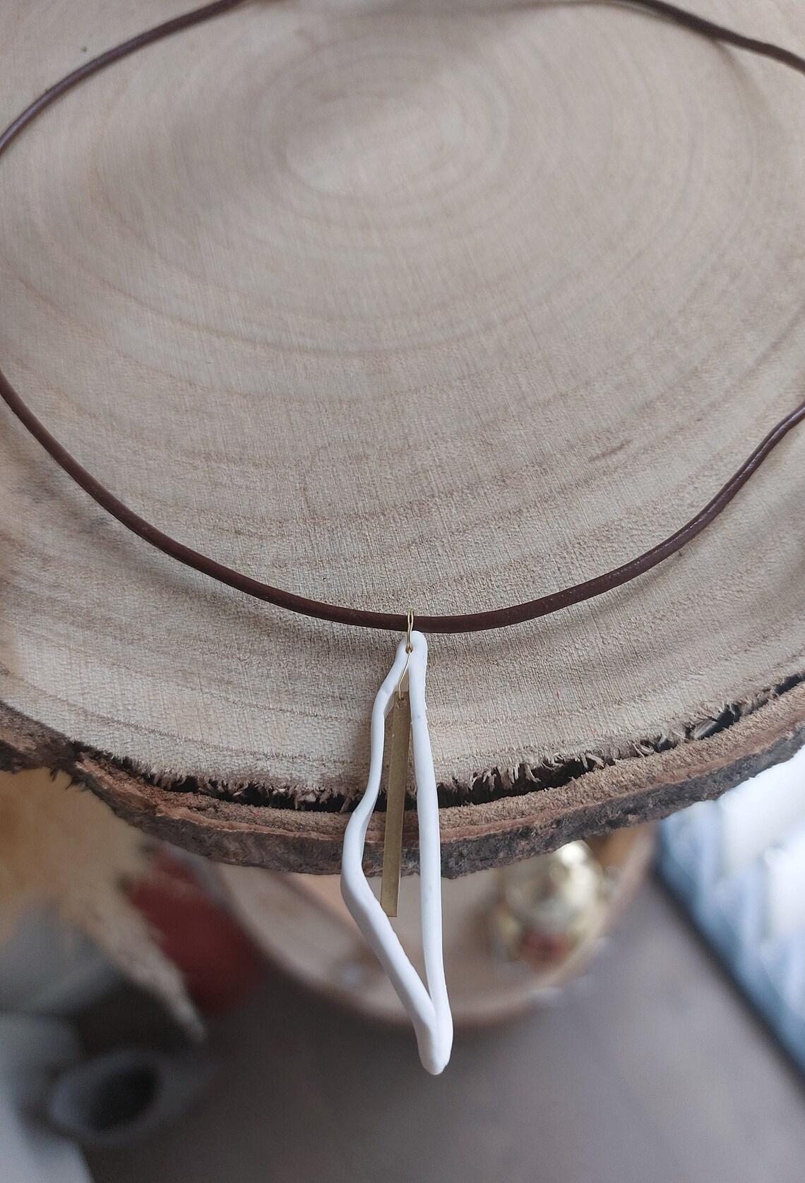Hand-made clay Palestinian map leather brass plated necklace
