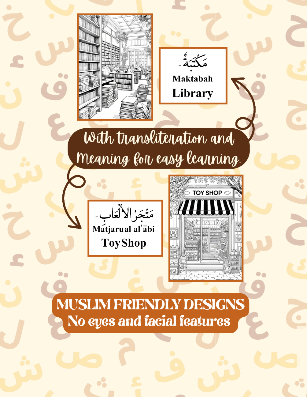 Immerse yourself in the beauty of the Arabic language through the places that bring us together — from the masjid to the market, from the home to the garden.