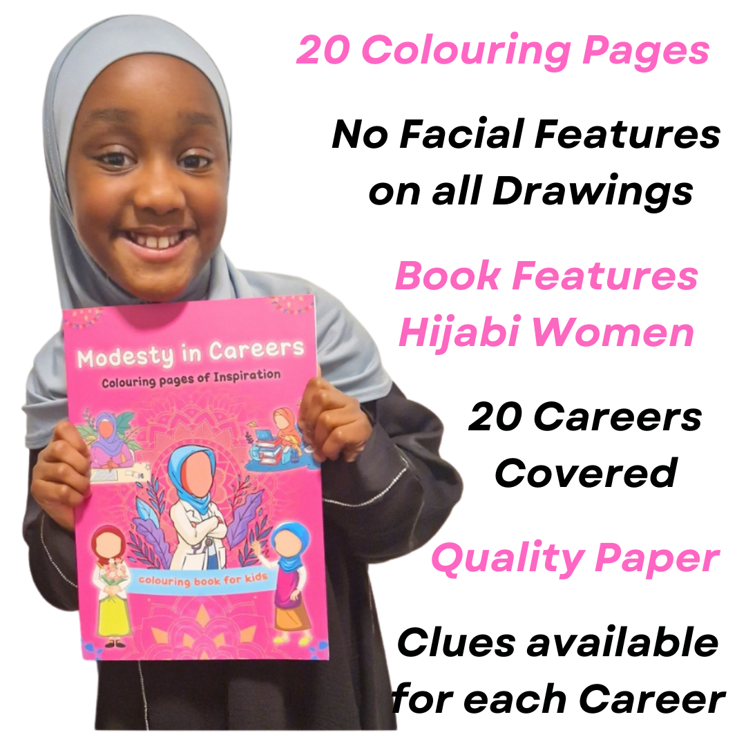 The "Modesty in Careers Coloring Book for Kids" is a 20-page coloring book that is perfect for children who want to learn about diverse role models in various careers. The book features hijabi women in 20 amazing careers, including doctors, nurse, pharmacists, and more. This coloring book is designed to empower and inspire children to believe in their dreams and show them that they have the potential to achieve anything they set their minds to.